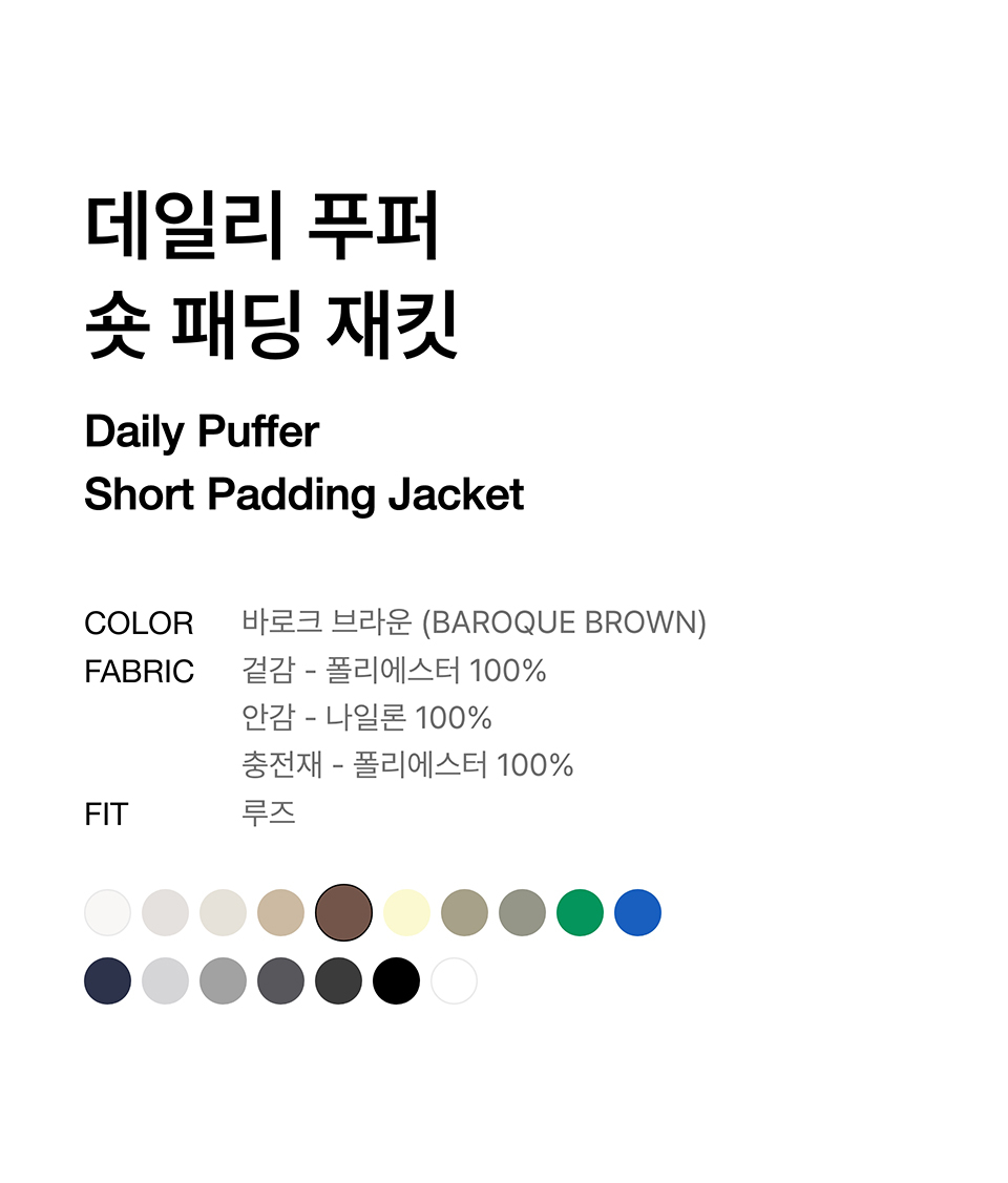 데일리 푸퍼 숏 패딩 재킷 [바로크 브라운]