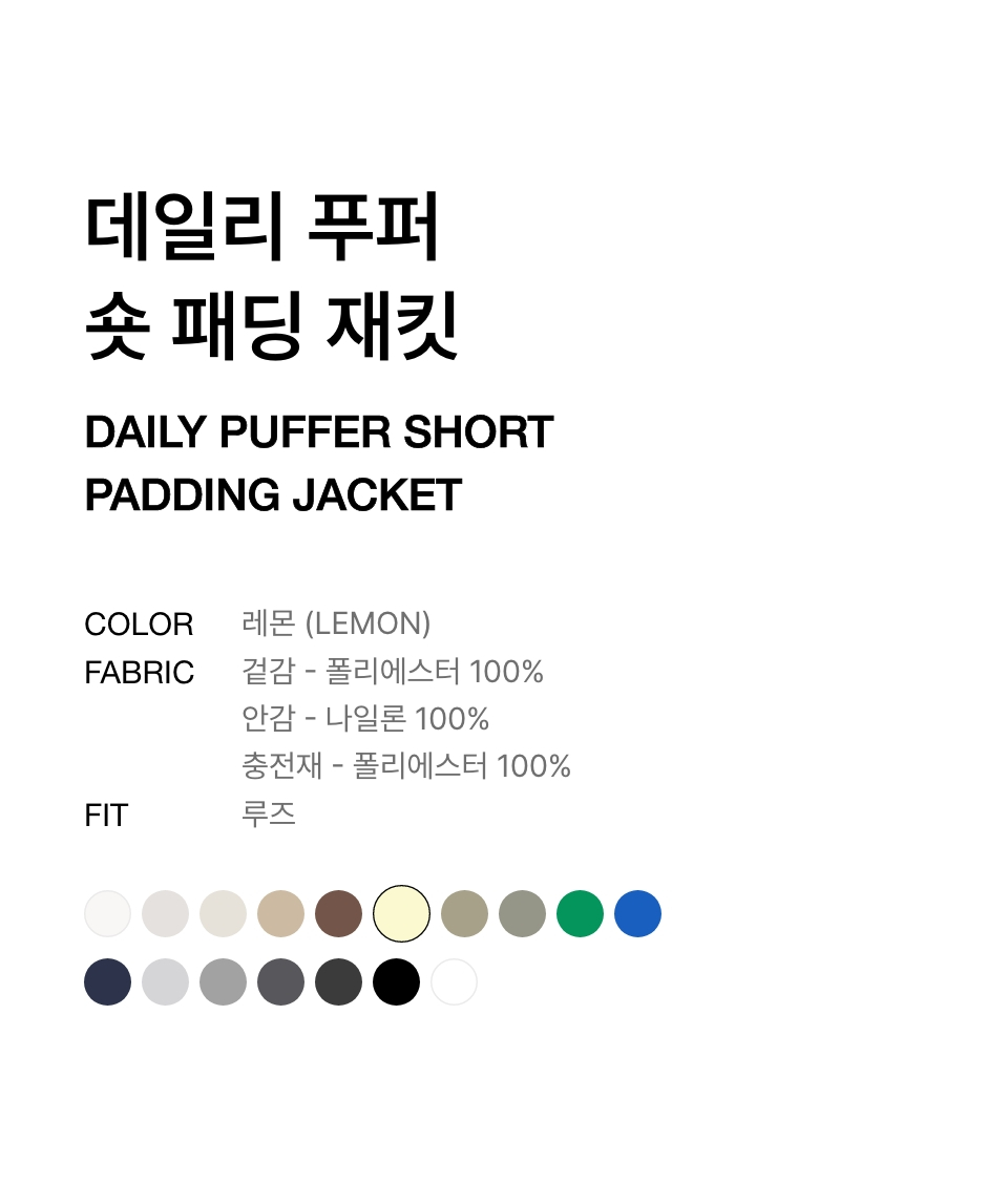 데일리 푸퍼 숏 패딩 재킷 [레몬]