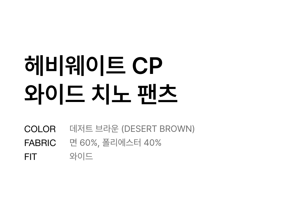 헤비웨이트 CP 와이드 치노 팬츠 [데저트 브라운]