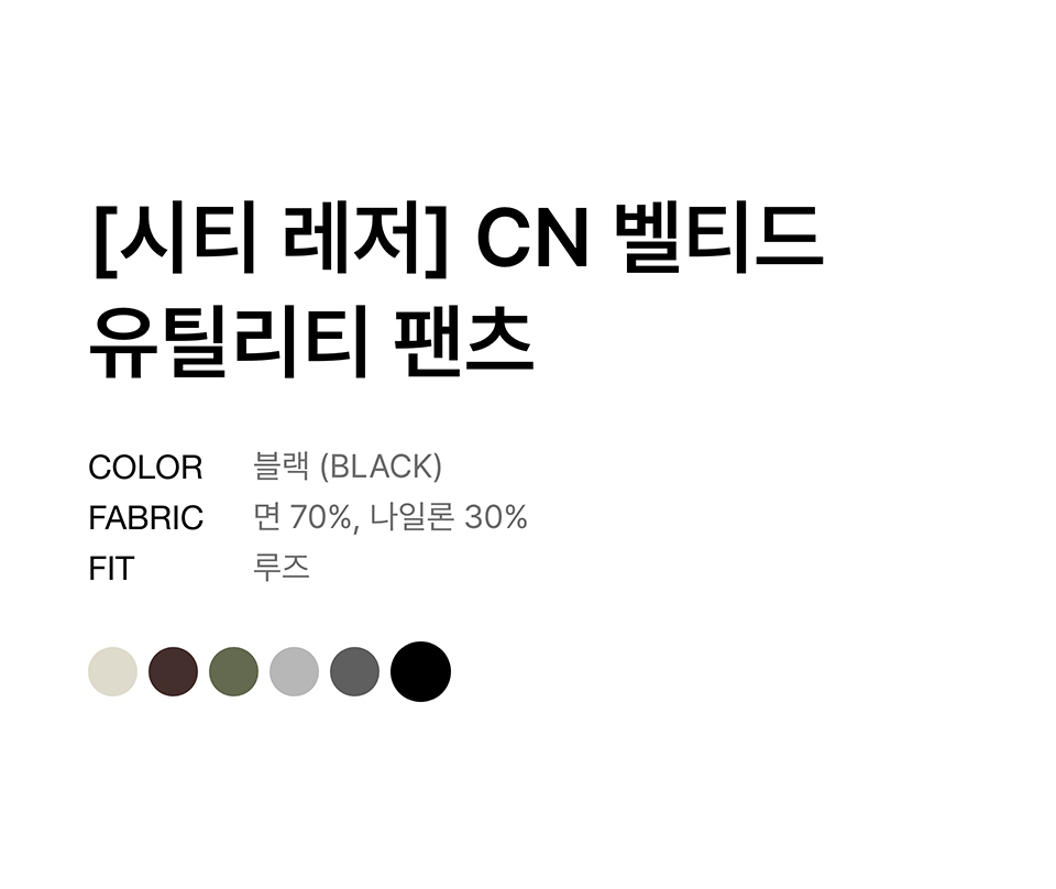 [시티 레저] CN 벨티드 유틸리티 팬츠 [블랙]