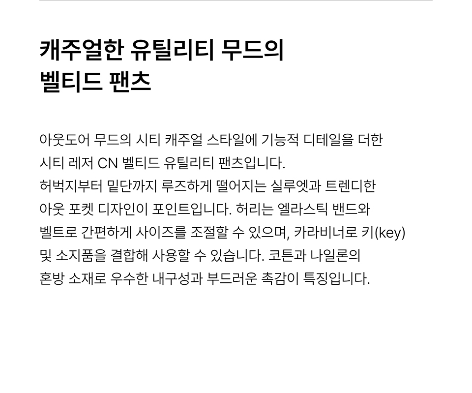 [시티 레저] CN 벨티드 유틸리티 팬츠 [블랙]