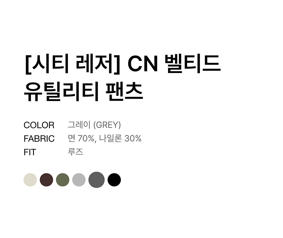 [시티 레저] CN 벨티드 유틸리티 팬츠 [그레이]