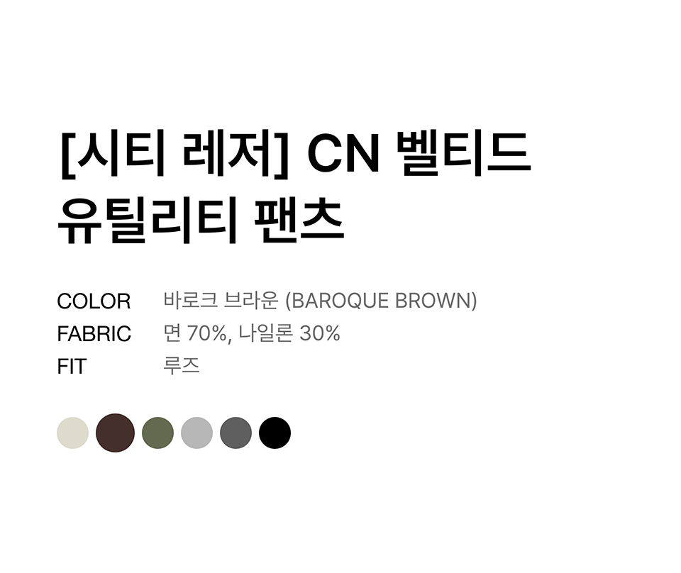 [시티 레저] CN 벨티드 유틸리티 팬츠 [바로크 브라운]