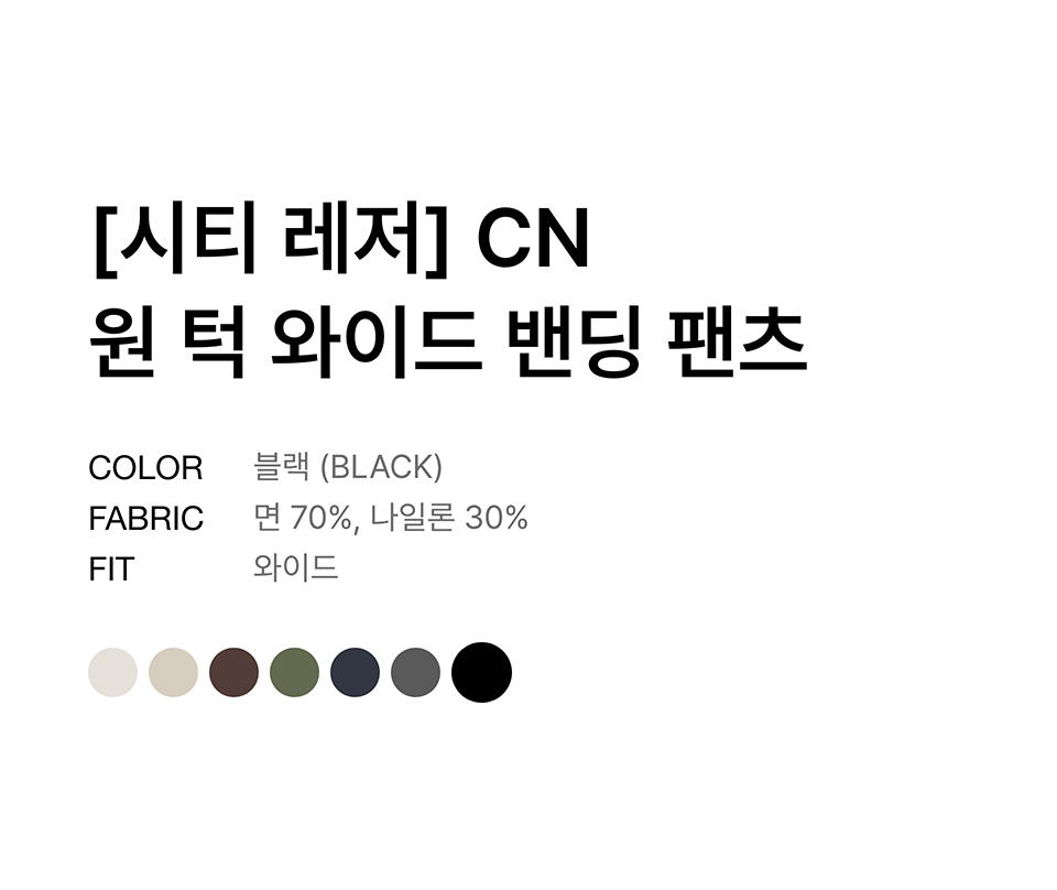 [시티 레저] CN 원 턱 와이드 밴딩 팬츠 [블랙]