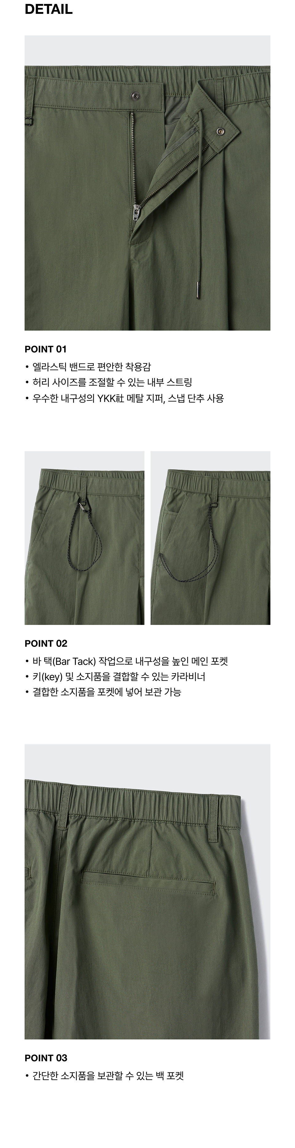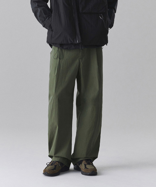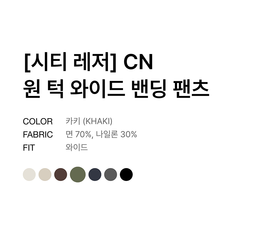 [시티 레저] CN 원 턱 와이드 밴딩 팬츠 [카키]