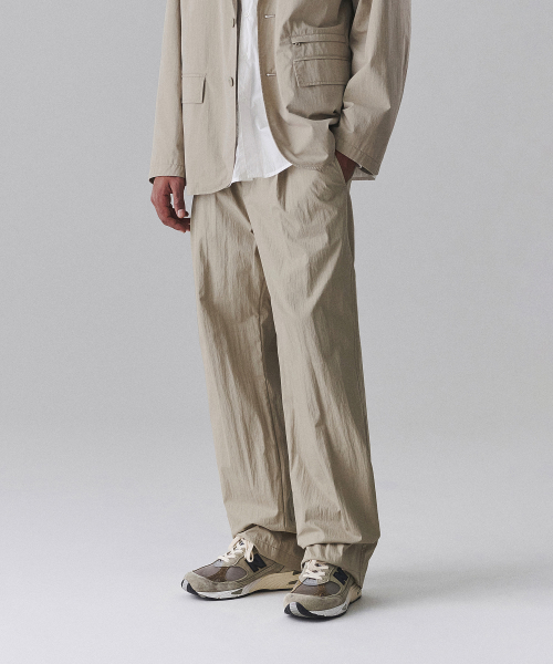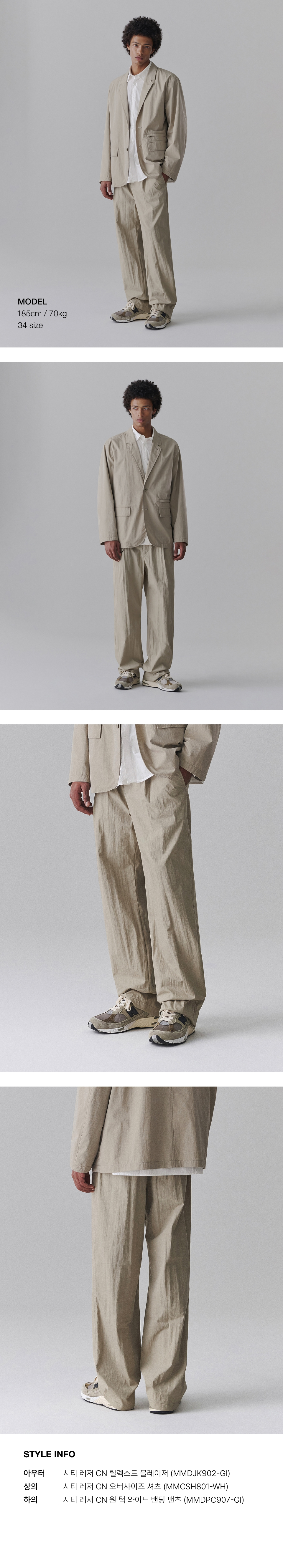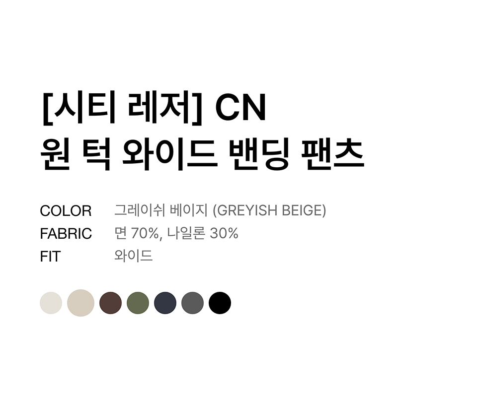 [시티 레저] CN 원 턱 와이드 밴딩 팬츠 [그레이쉬 베이지]