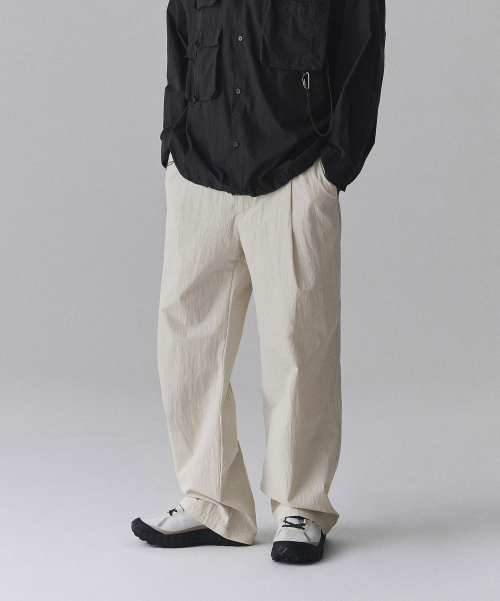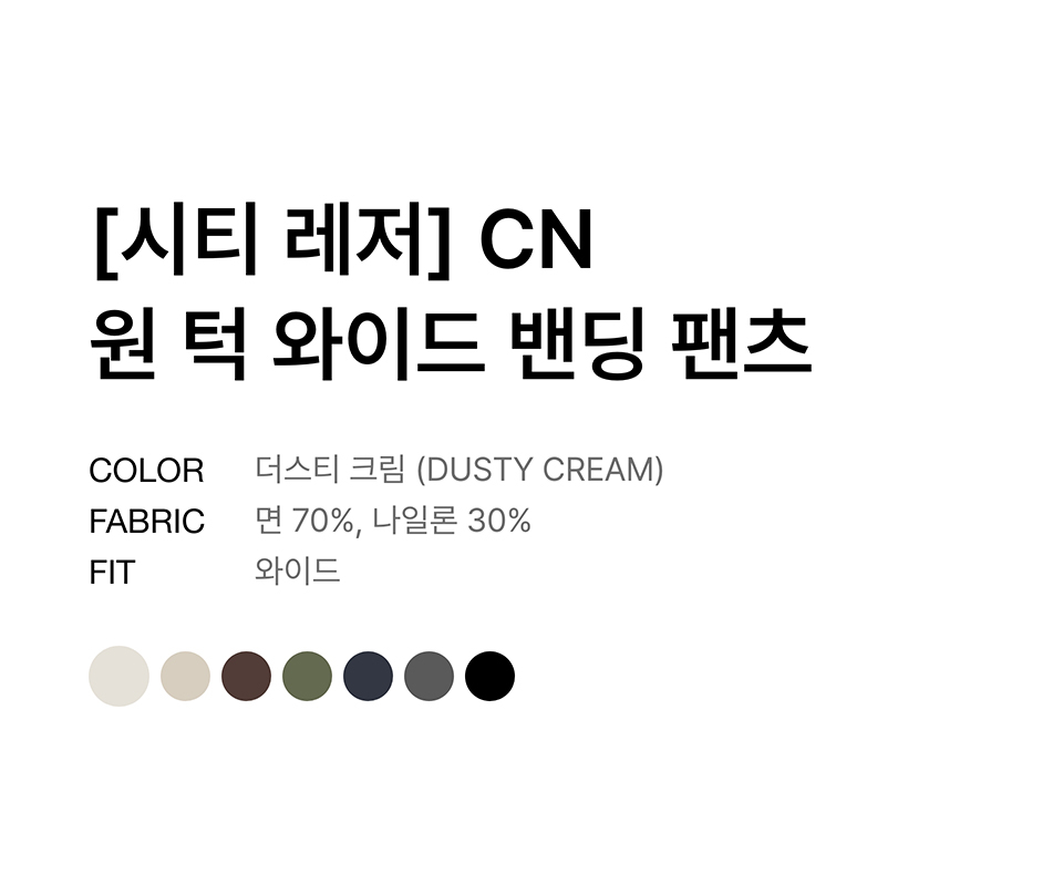 [시티 레저] CN 원 턱 와이드 밴딩 팬츠 [더스티 크림]
