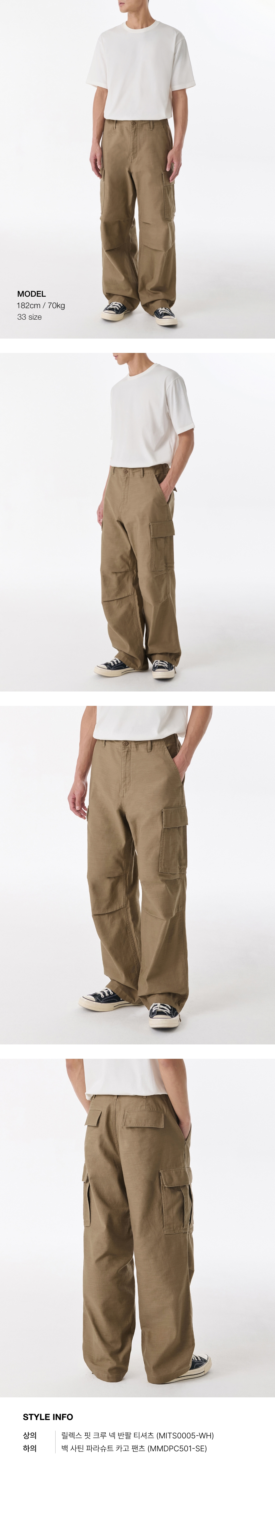 백 사틴 파라슈트 카고 팬츠 [카키]
