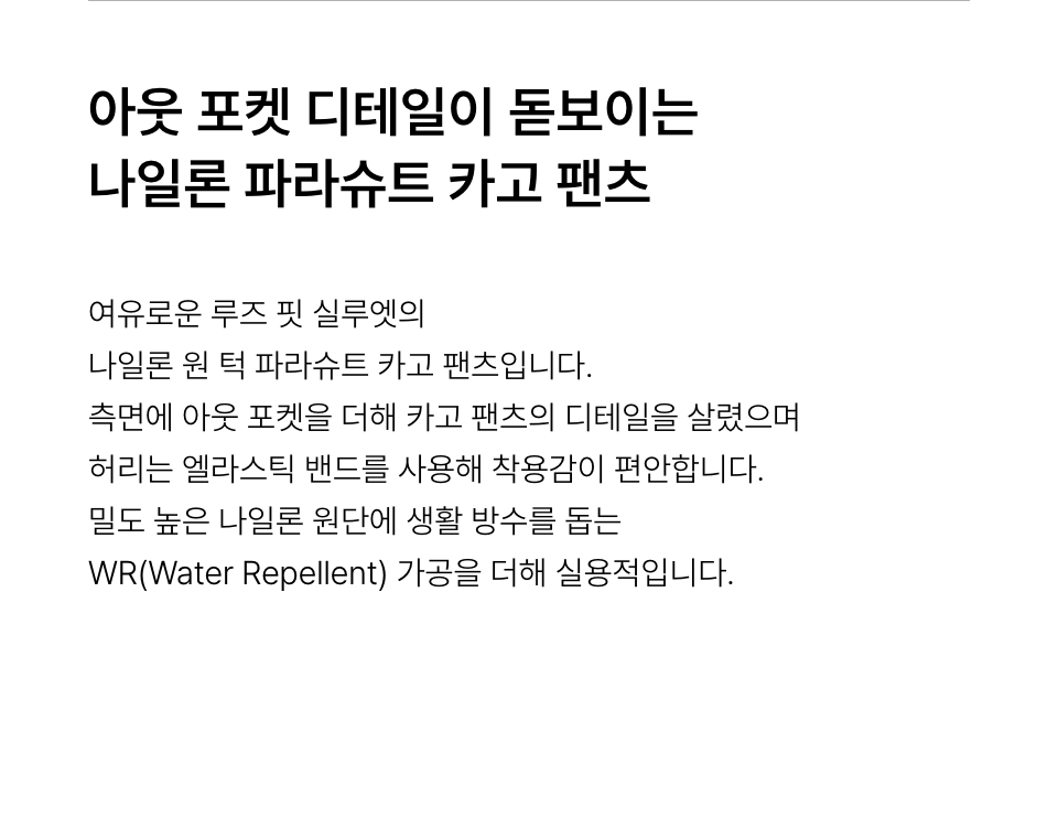 나일론 원 턱 파라슈트 카고 팬츠 [블랙]