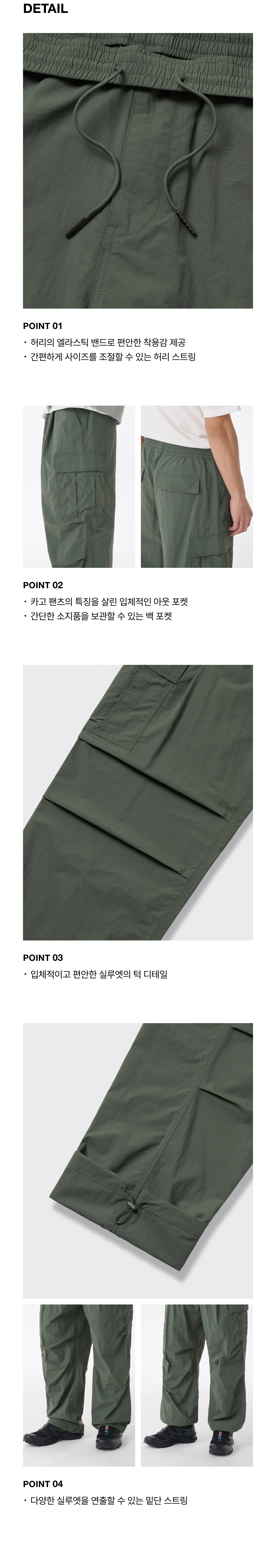 코튼 파라슈트 밴딩 카고 팬츠 [블랙]