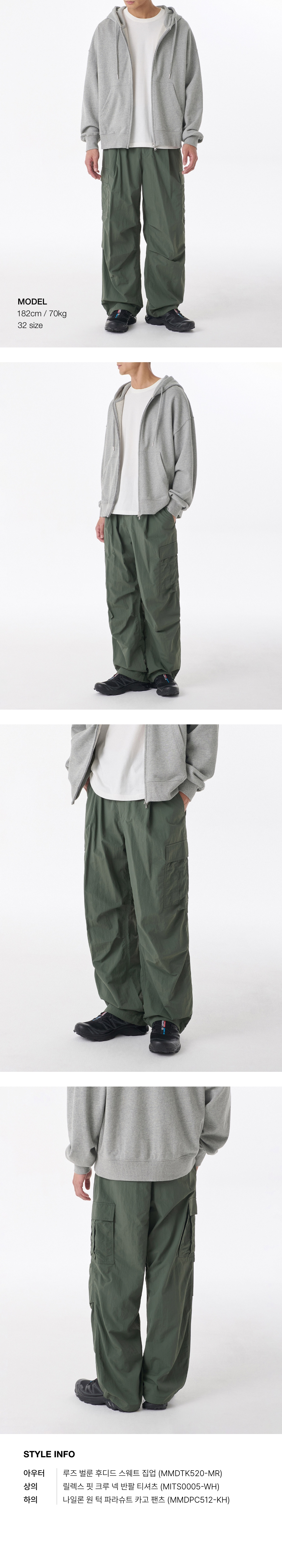 나일론 원 턱 파라슈트 카고 팬츠 [카키]