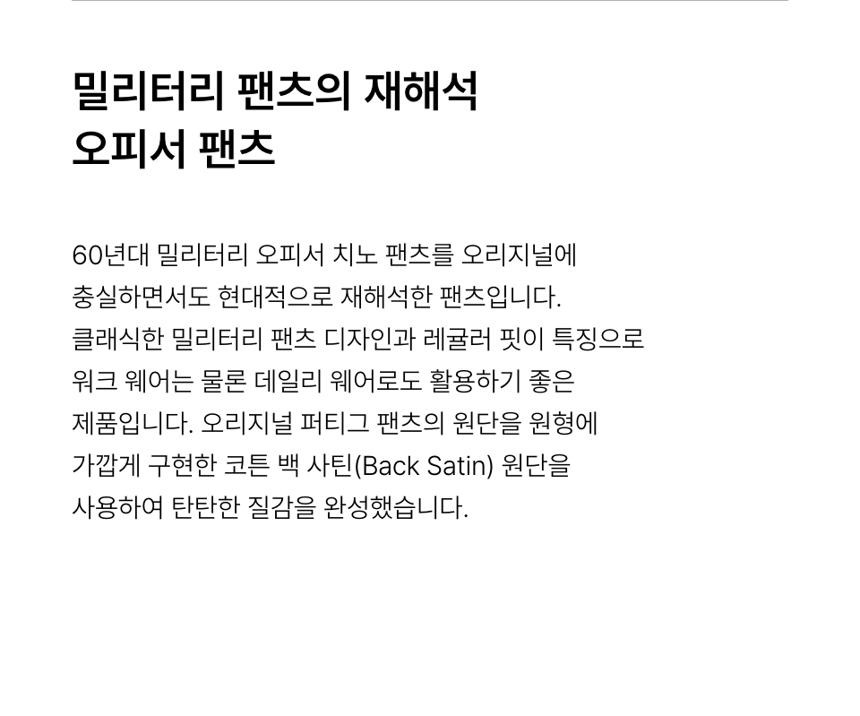 무신사 스탠다드(MUSINSA STANDARD)는 대한민국을 대표하는 온라인 패션 스토어 무신사가 전개하는 자체상표(Private Brand)이며, 모던 베이식 캐주얼웨어를 지향합니다. 단순한 유통구조의 효율적인 운영으로 좋은 품질의 제품을 합리적인 가격에 선보입니다. 가치소비 시대의 새로운 기준을 제시합니다.