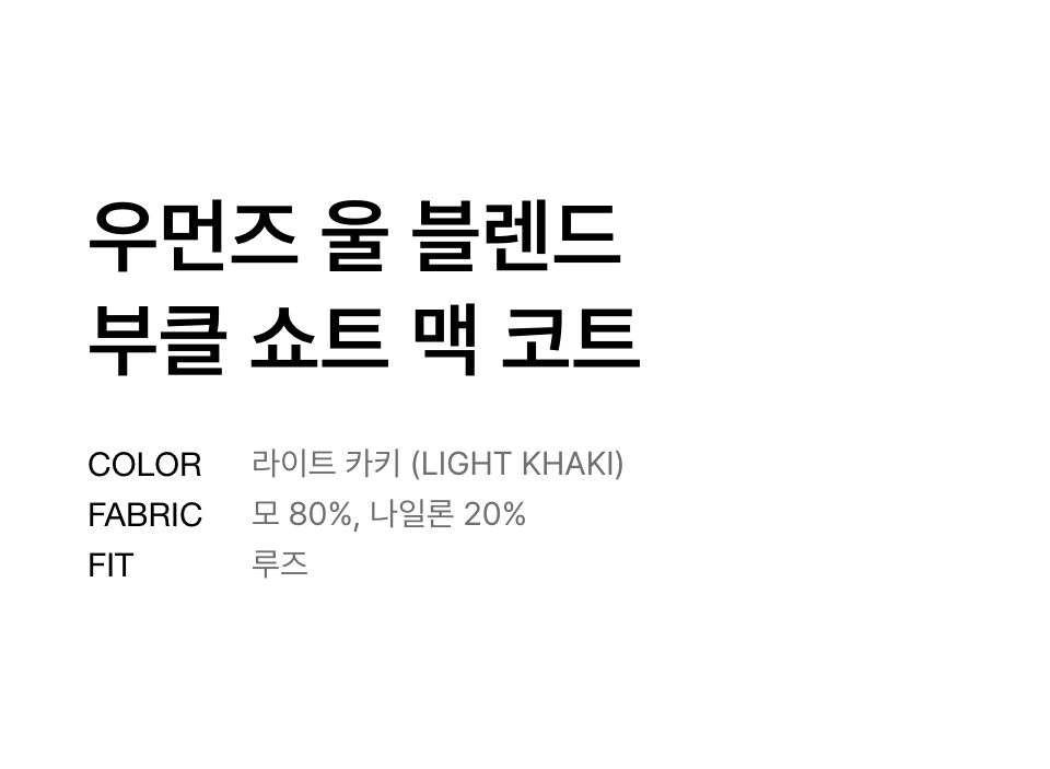우먼즈 울 블렌드 부클 쇼트 맥 코트 [라이트 카키]