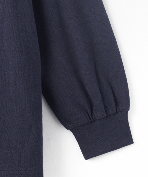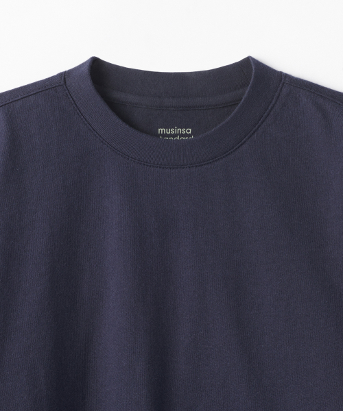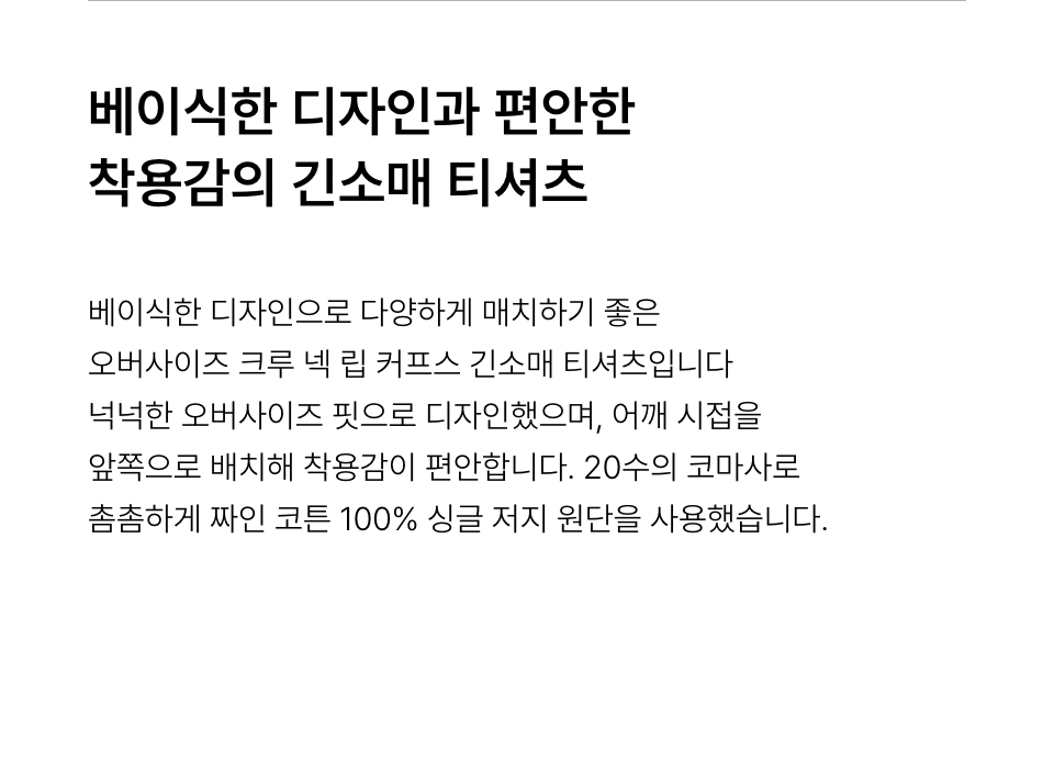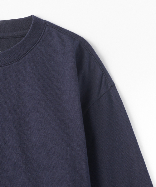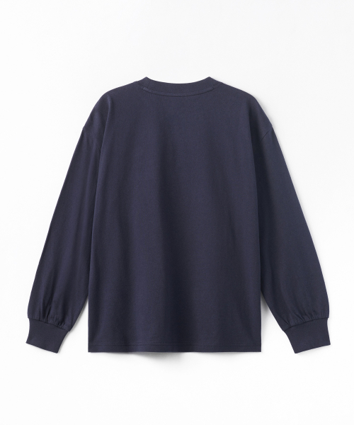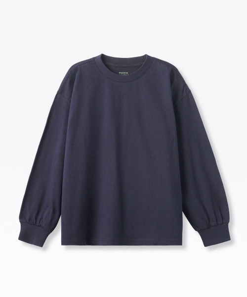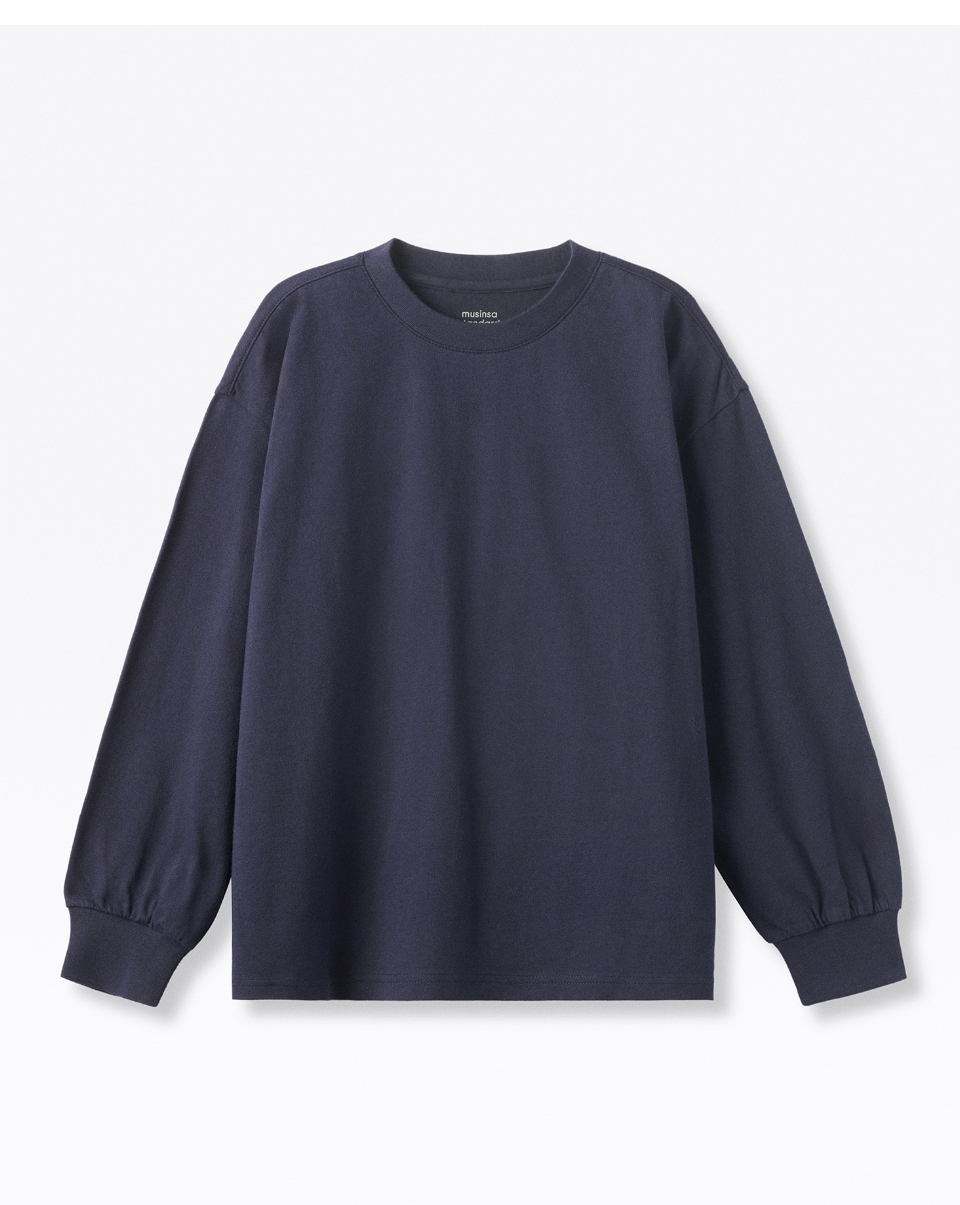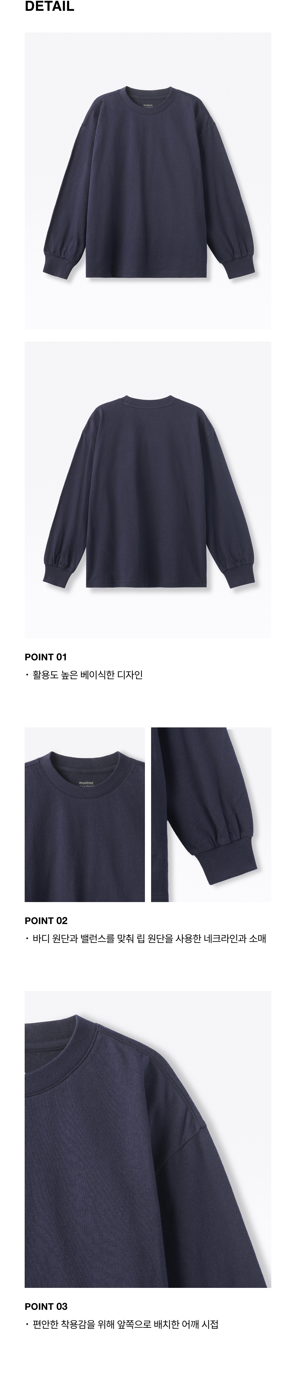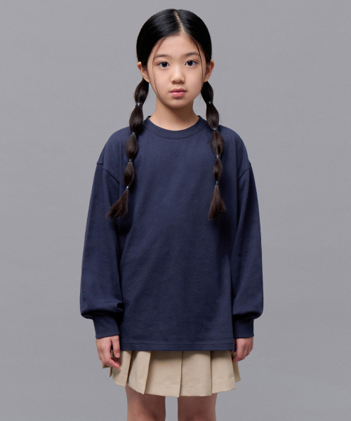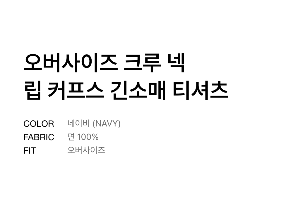 오버사이즈 크루 넥 립 커프스 긴소매 티셔츠 [네이비]