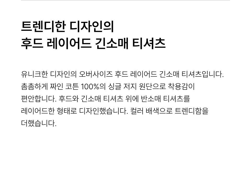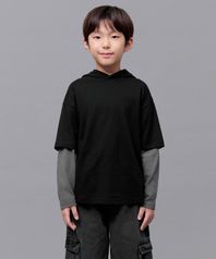오버사이즈 후드 레이어드 긴소매 티셔츠 [블랙/다크 그레이]