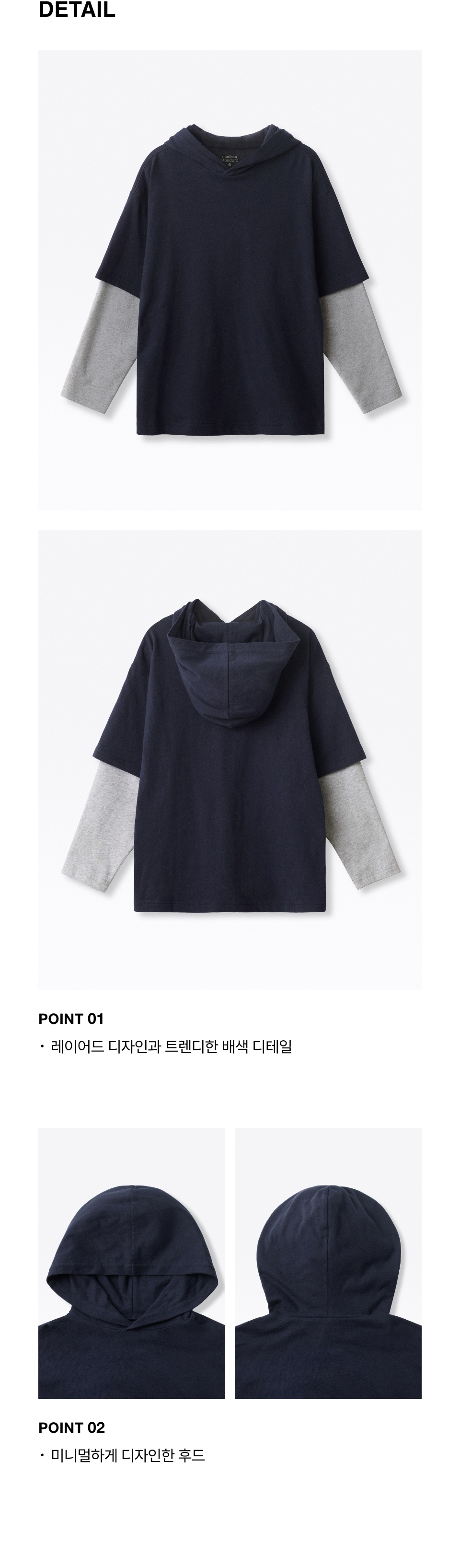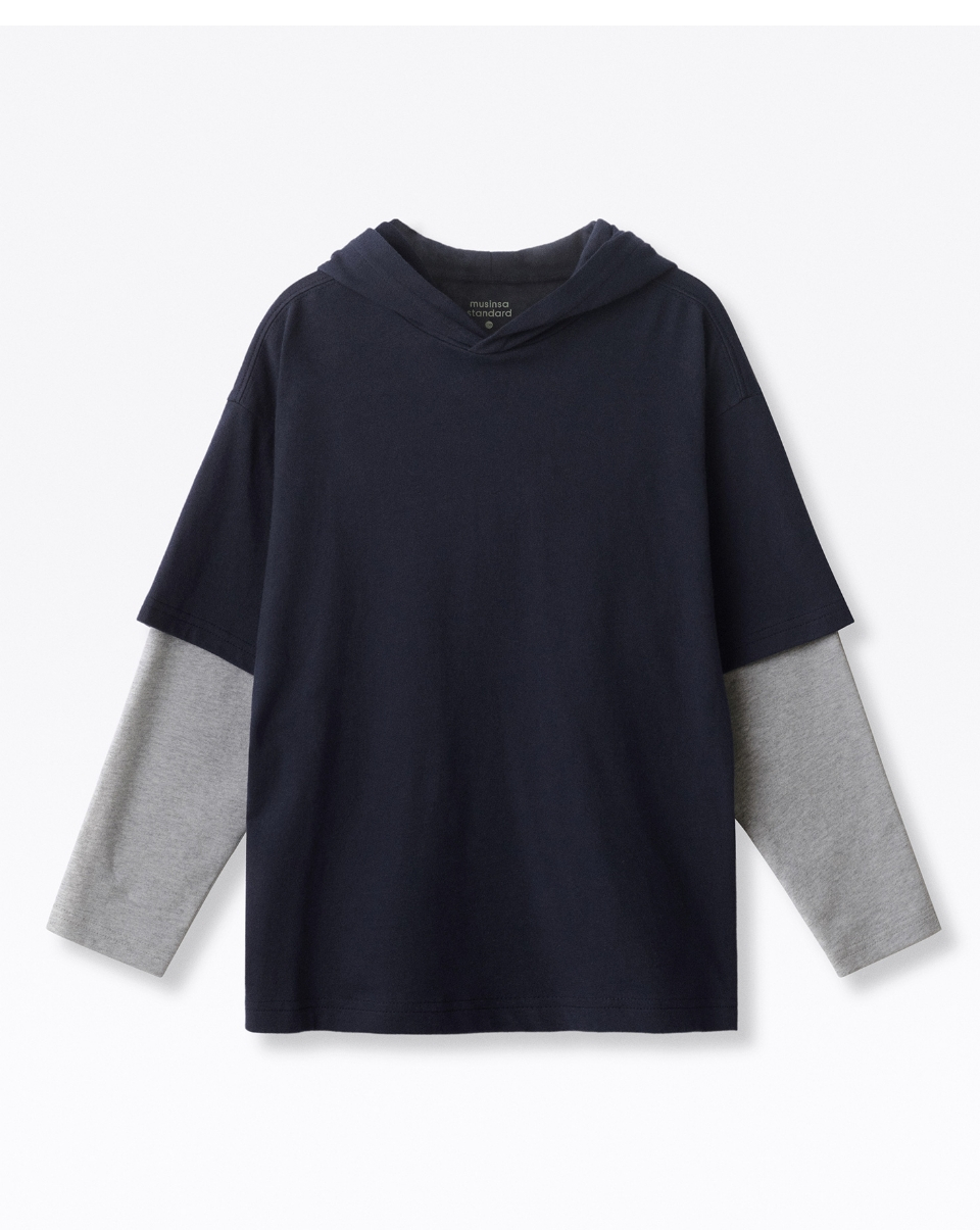 오버사이즈 후드 레이어드 긴소매 티셔츠 [네이비/멜란지 그레이]