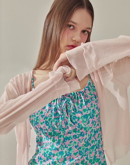 쉬폰 러플 크롭 오픈 가디건 pink