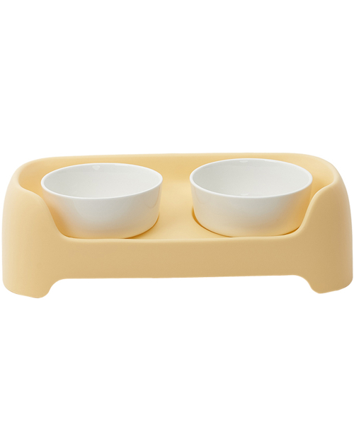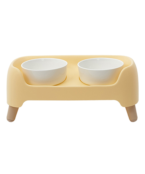 강아지 3단 높이조절 커브 도자기 2구 식탁세트 버터옐로우