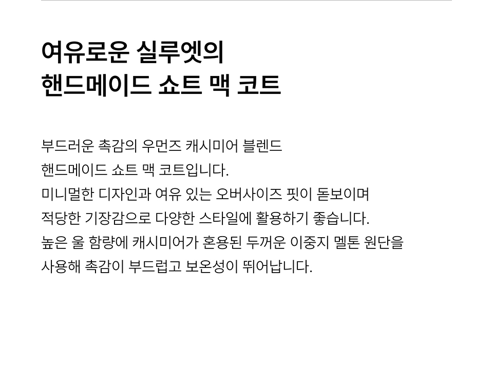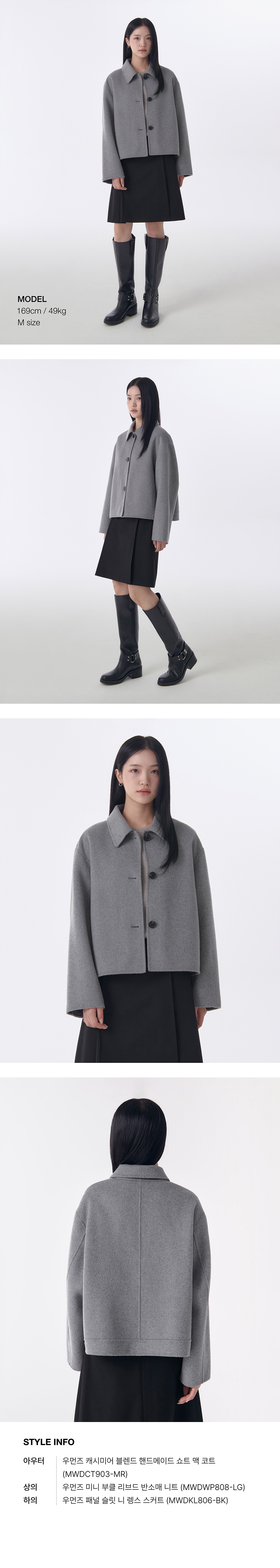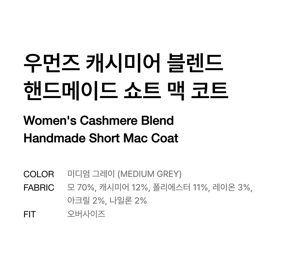 우먼즈 캐시미어 블렌드 핸드메이드 쇼트 맥 코트 [미디엄 그레이]