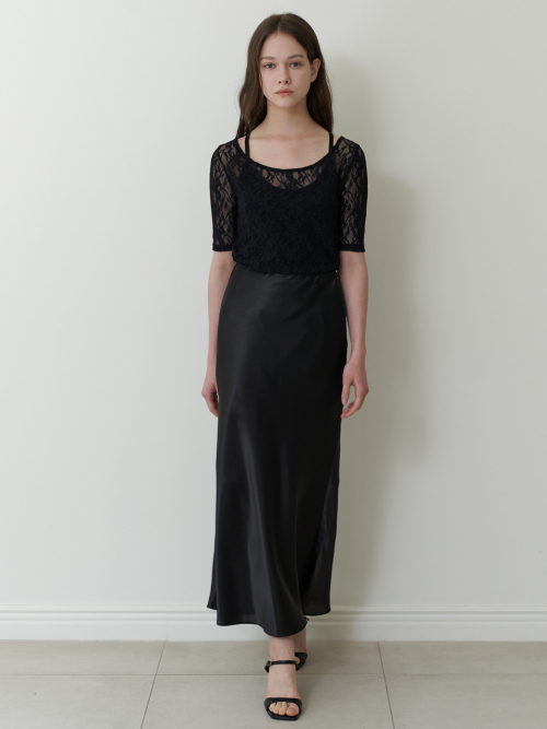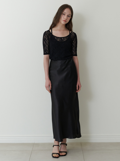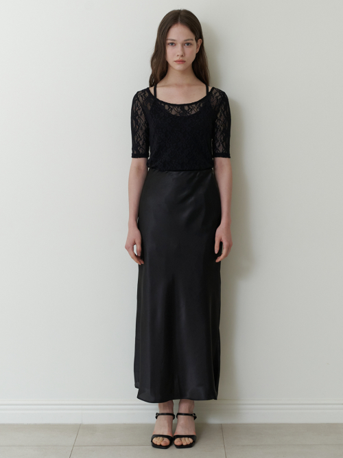 Relaxed Satin Maxi Skirt_CTS624(Black)