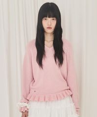 V-Neck Frill Knit (Light Pink)