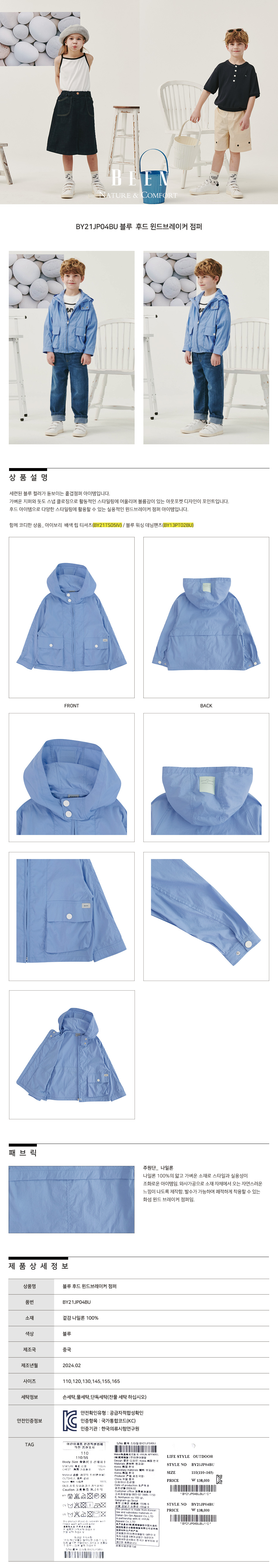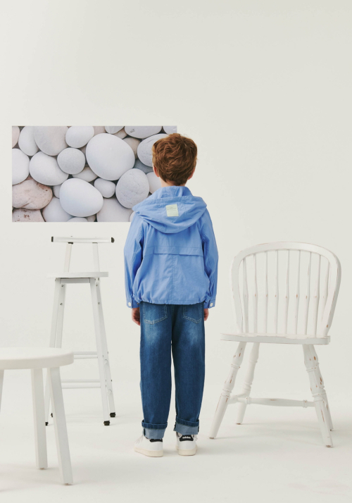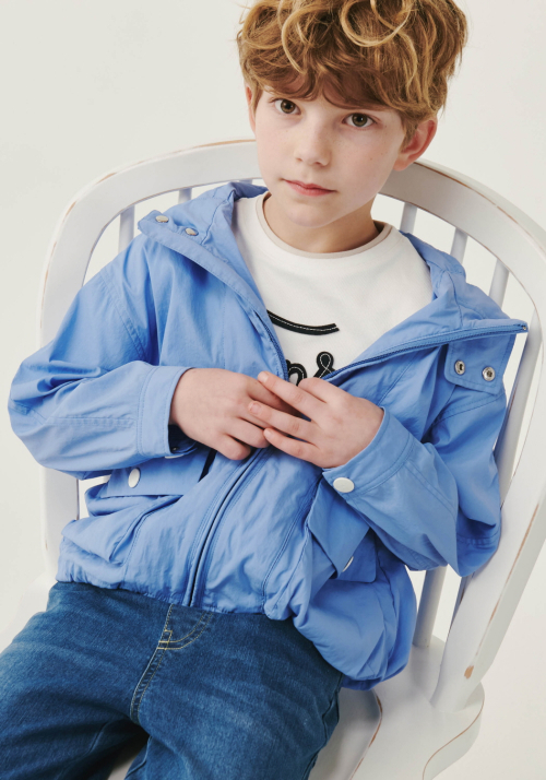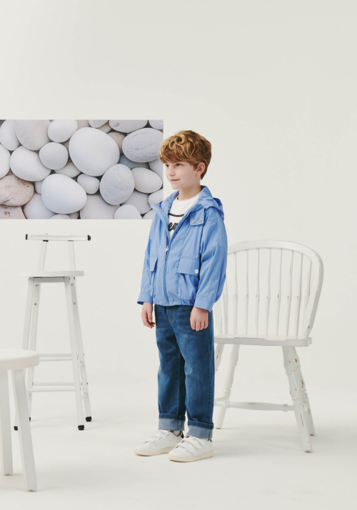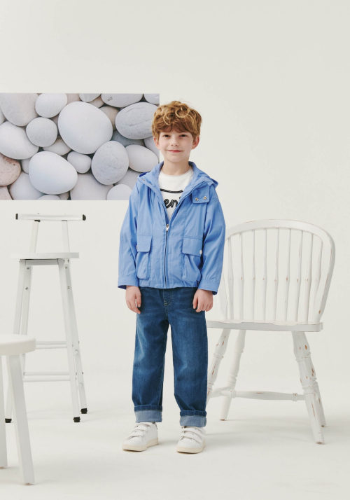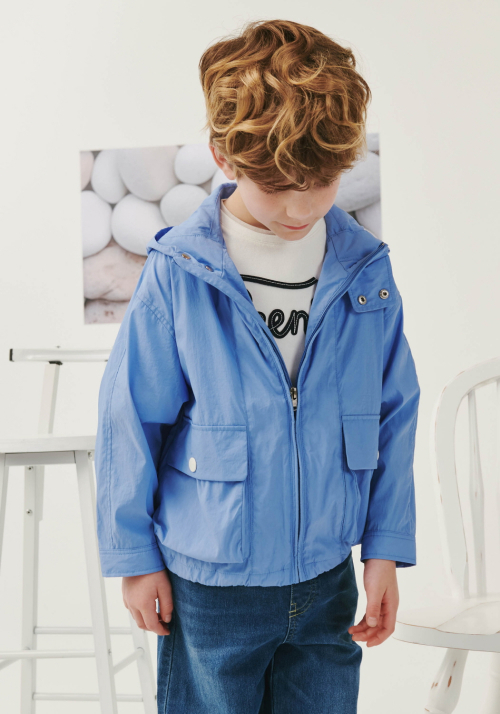 블루 후드 윈드브레이커 점퍼