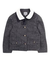 그레이 울혼방 리본 탈부착 카라 자켓