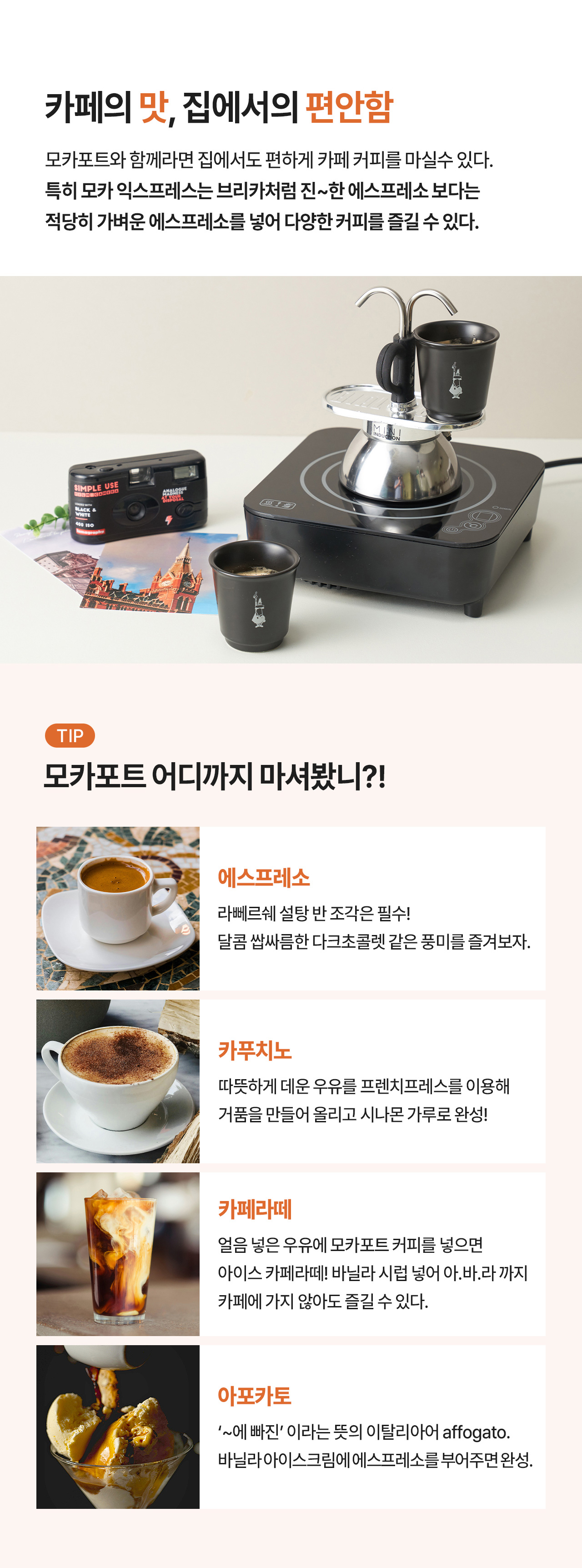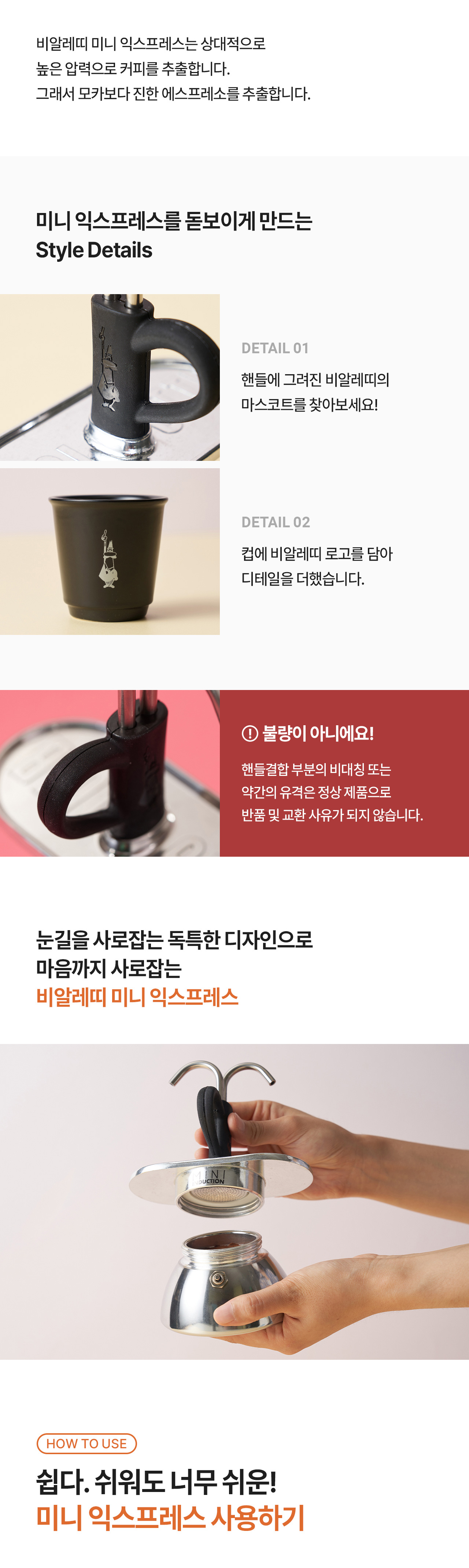 비알레띠(BIALETTI)는 오랜 전통을 가진 모카포트의 대표적인 브랜드입니다. 세계 최초로 가정용 에스프레소 커피메이커를 개발한 비알레띠는 1933년에 창립되어, 끊임없는 연구 개발을 통해 전통과 기술 혁신을 겸비한 완벽한 제품을 생산하고 있습니다.