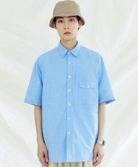 유틸리티 커브 포켓 루즈핏 옥스포드 하프 셔츠 스카이블루
