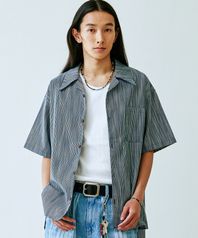 이츠카 스트라이프 오픈 카라 셔츠