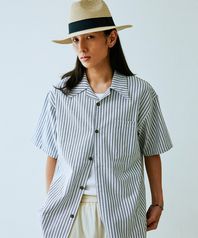 아오이로 스트라이프 오픈 카라 셔츠