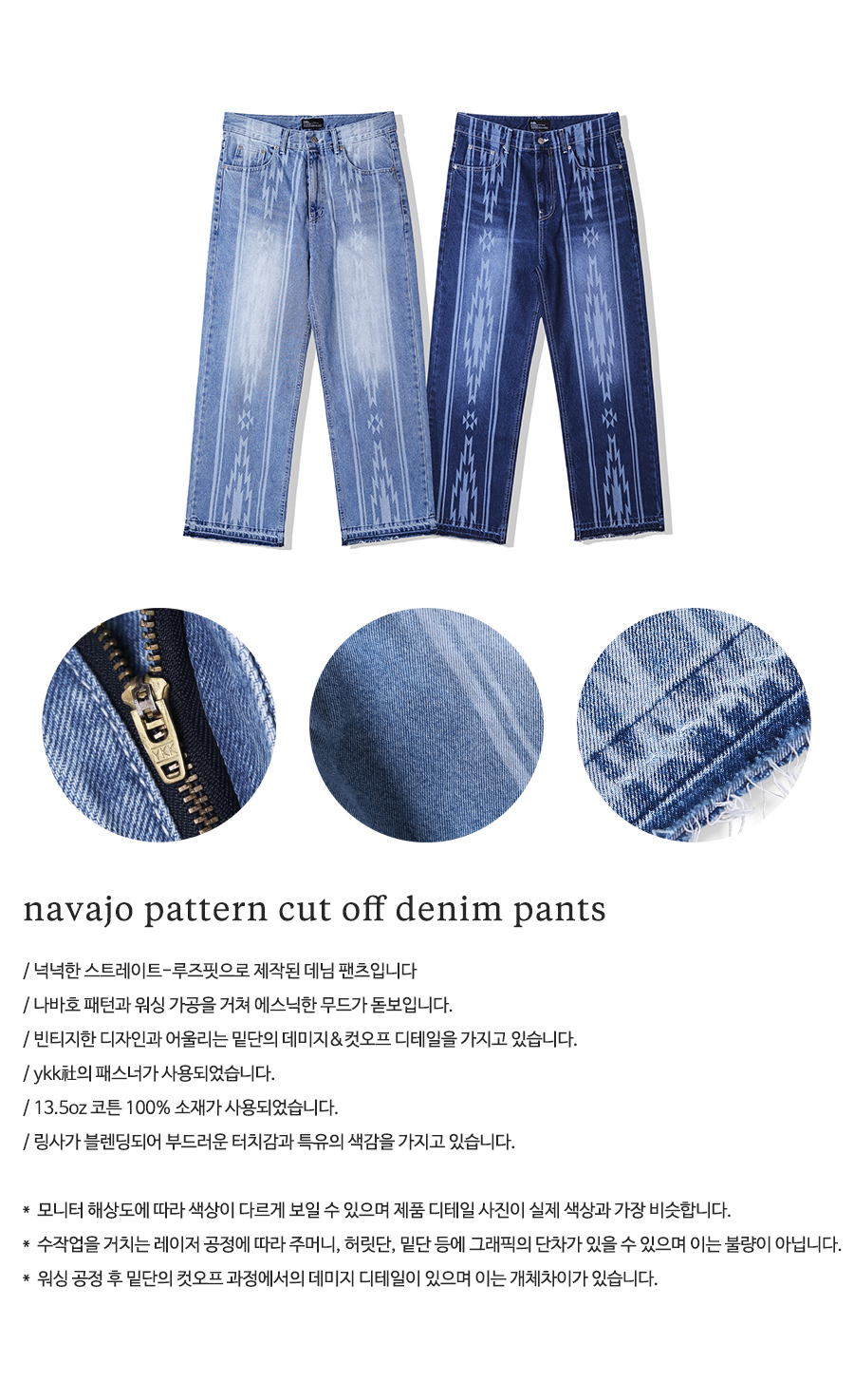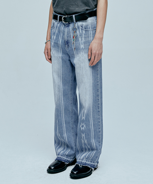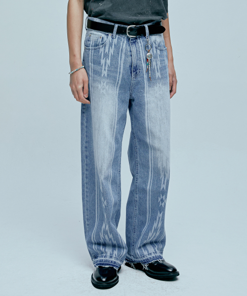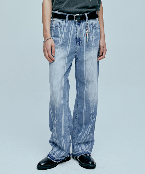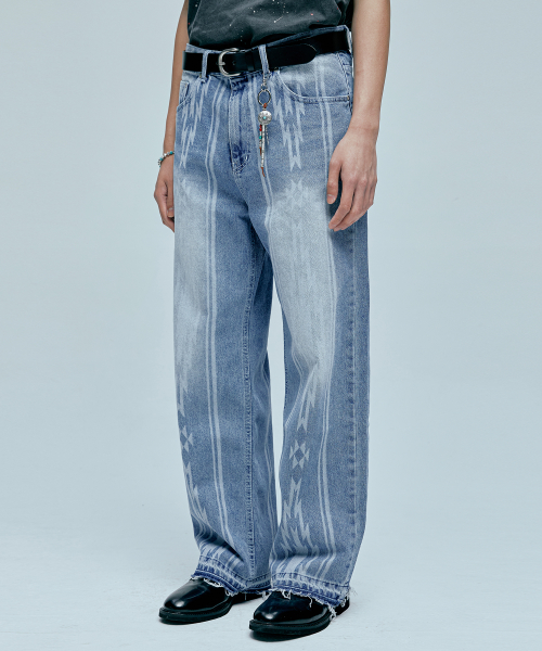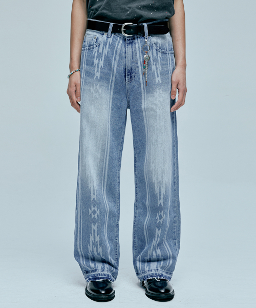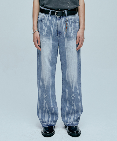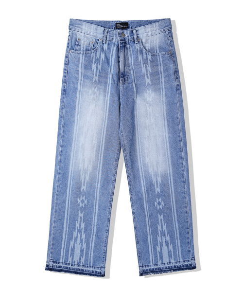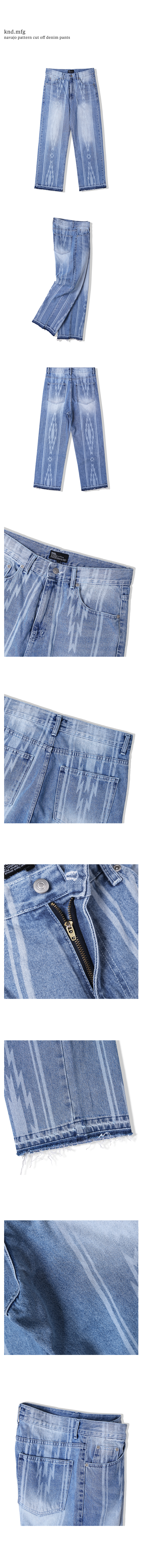 나바호 패턴 컷오프 데님 팬츠 라이트 블루