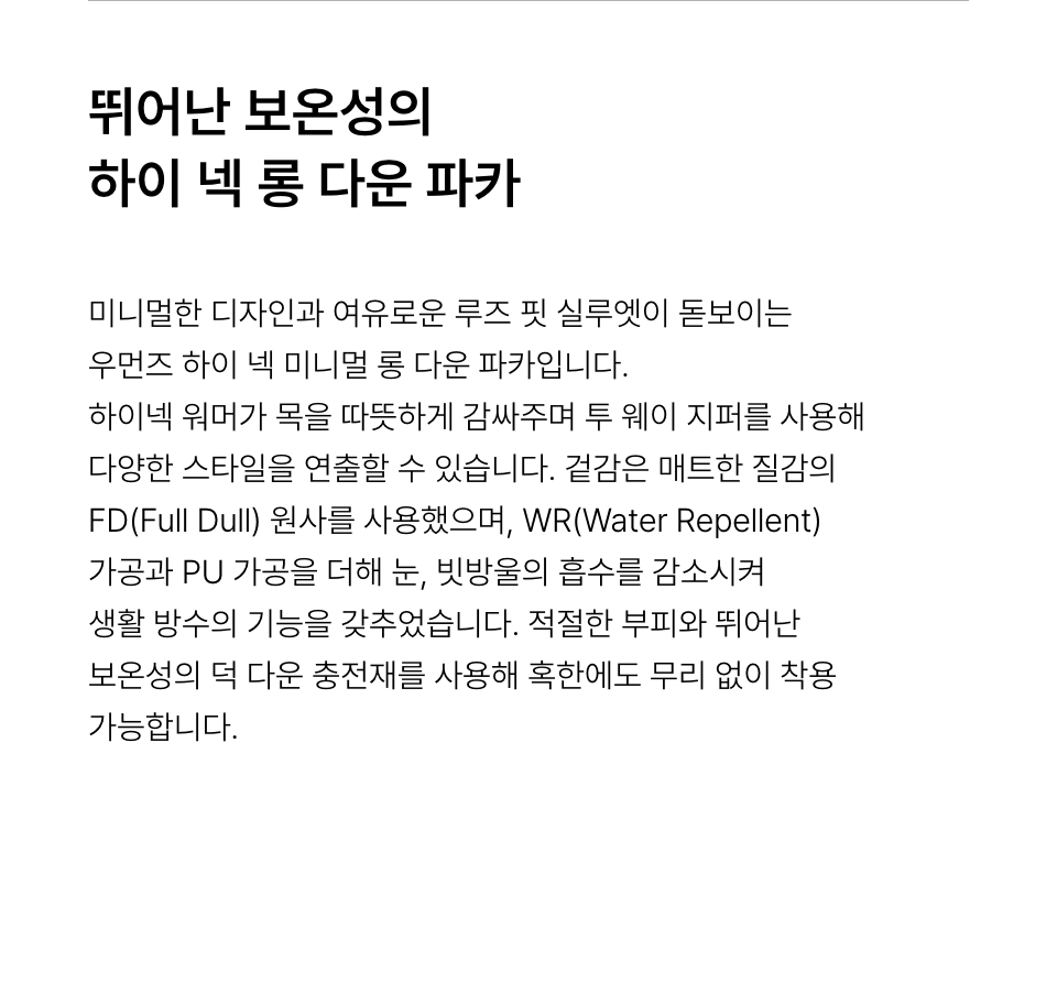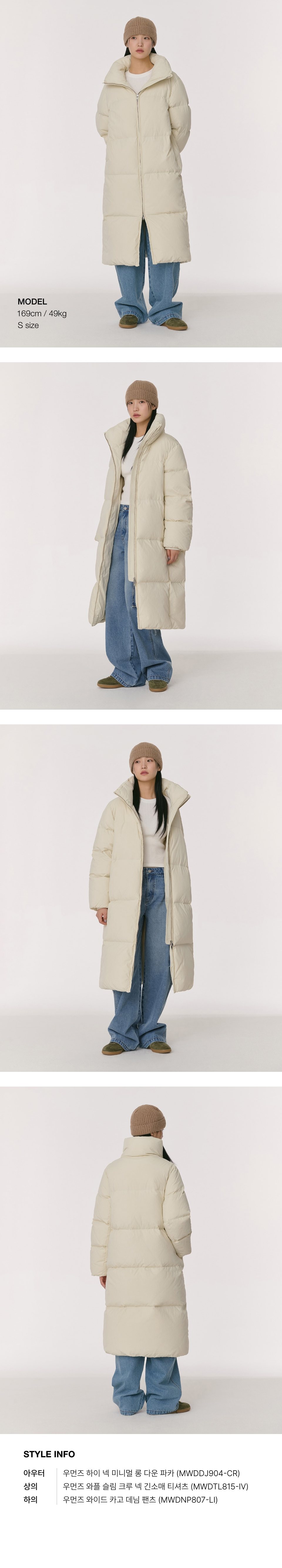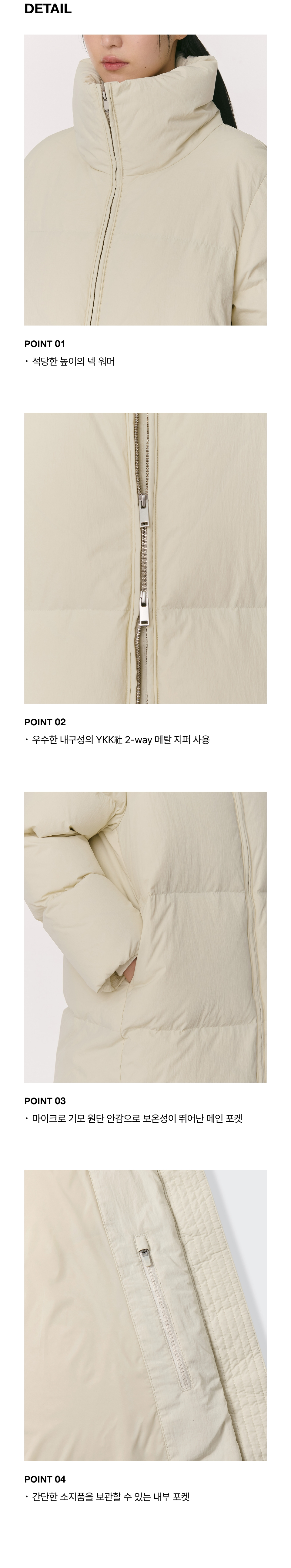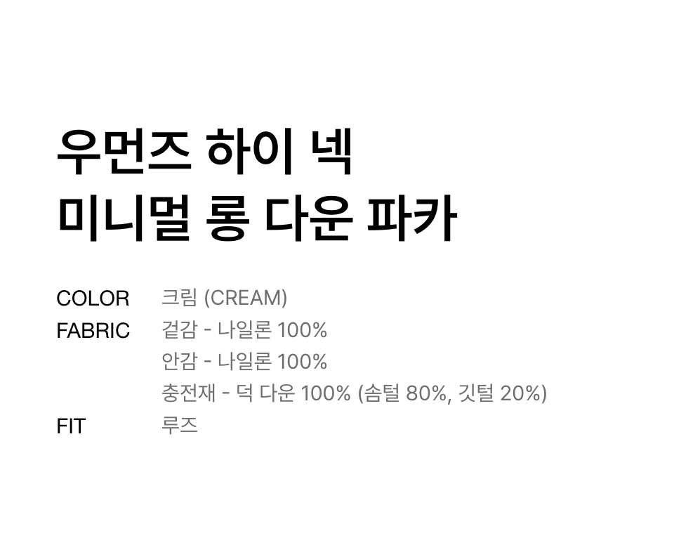 우먼즈 하이 넥 미니멀 롱 다운 파카 [크림]