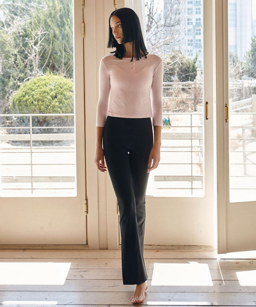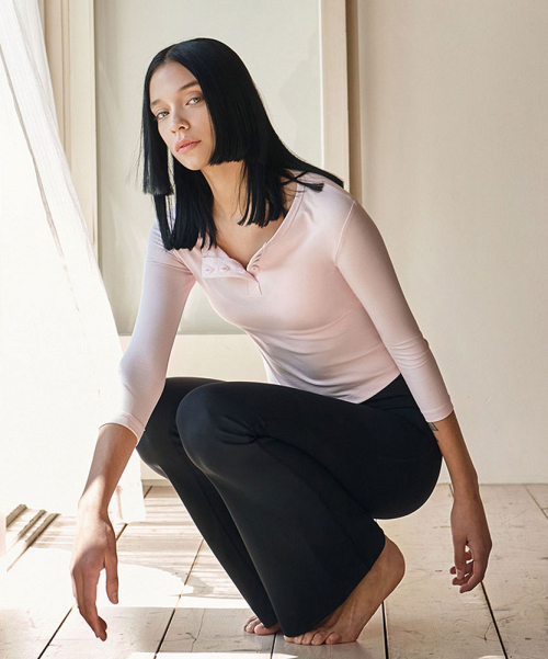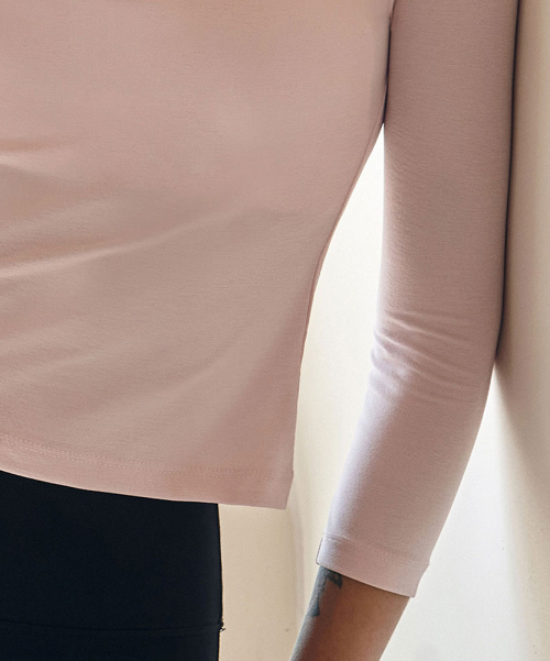여성 요가복 DEVI-T0108-베이비핑크 필라테스 헨리넥 7부 티셔츠