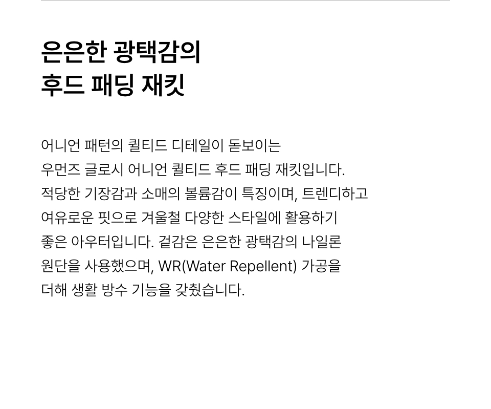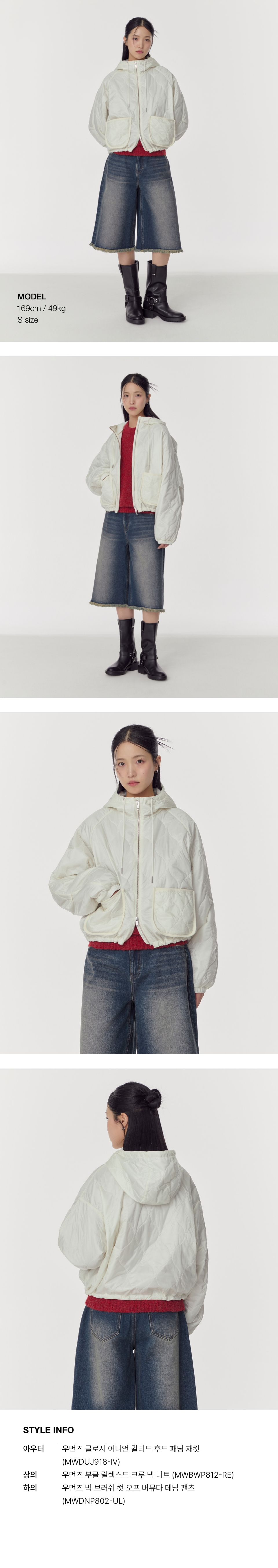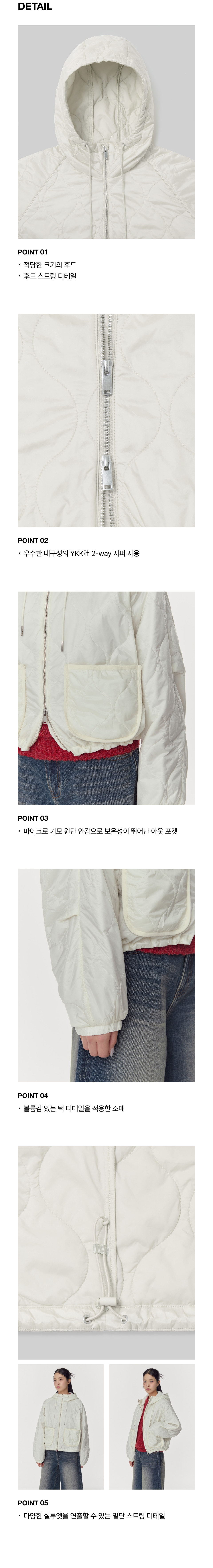 우먼즈 글로시 어니언 퀼티드 후드 패딩 재킷 [아이보리]