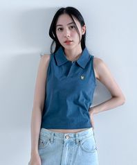 슬릿 카라 크롭 나시티 (블루)