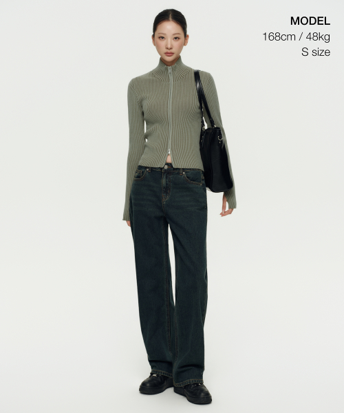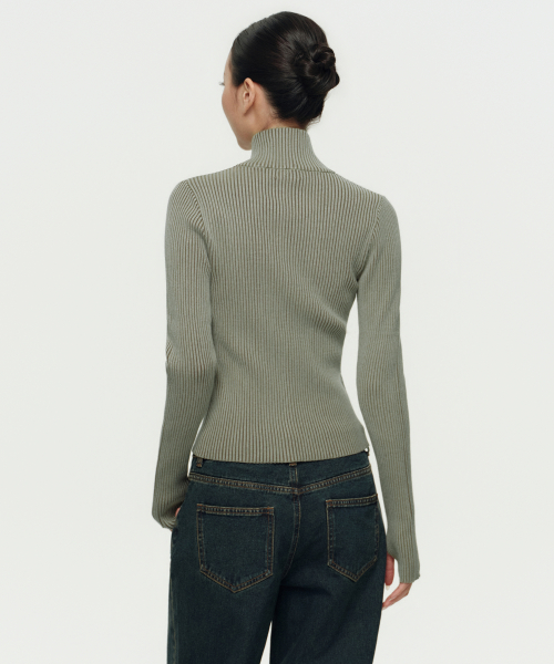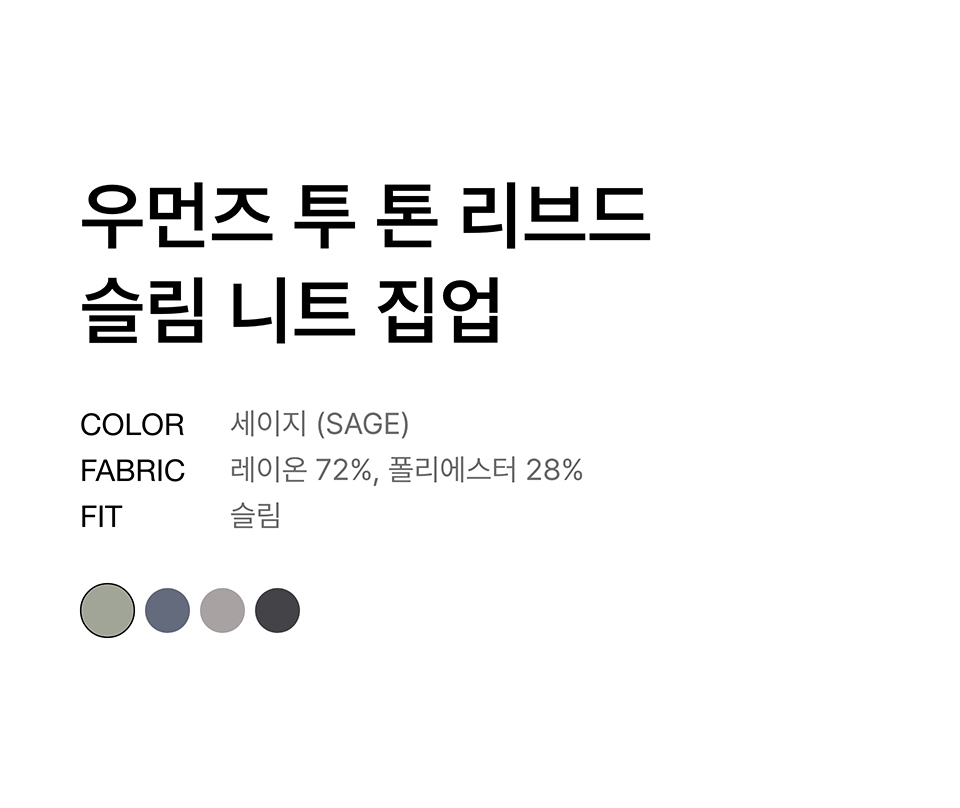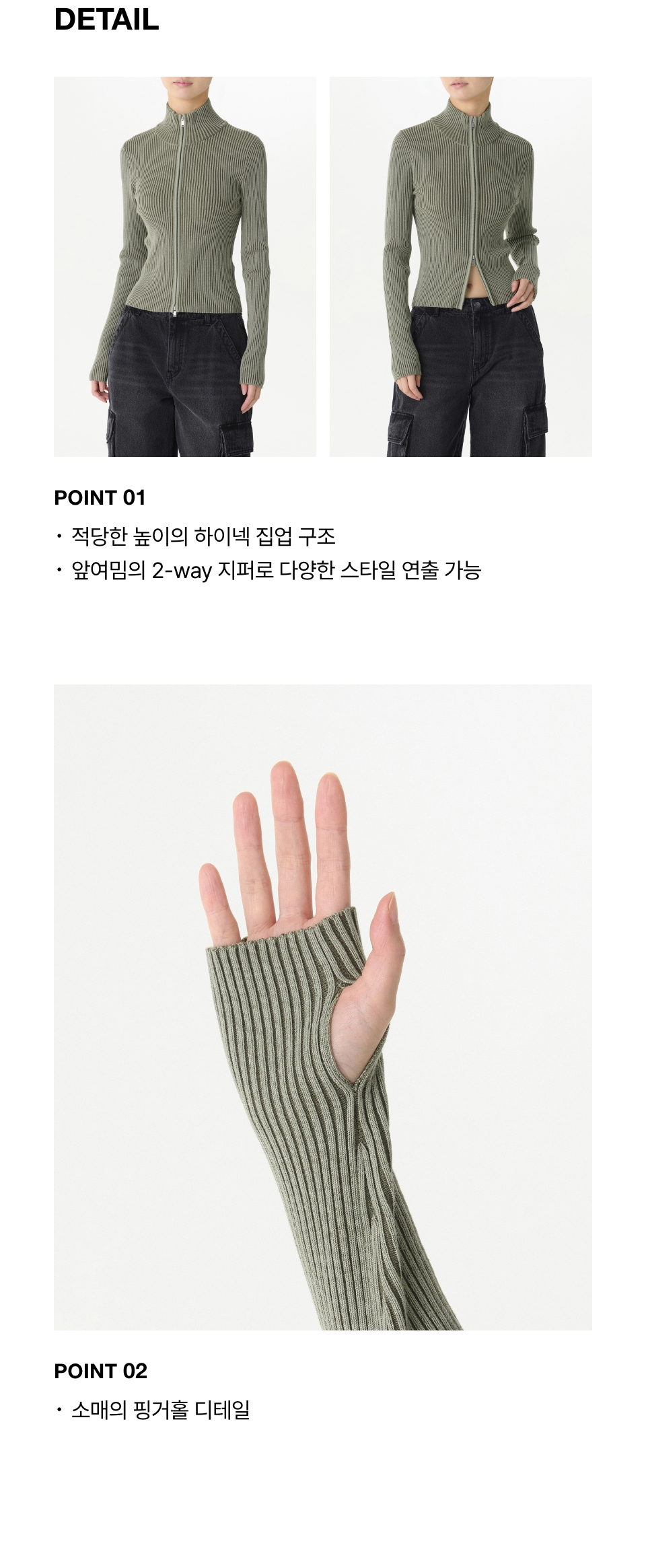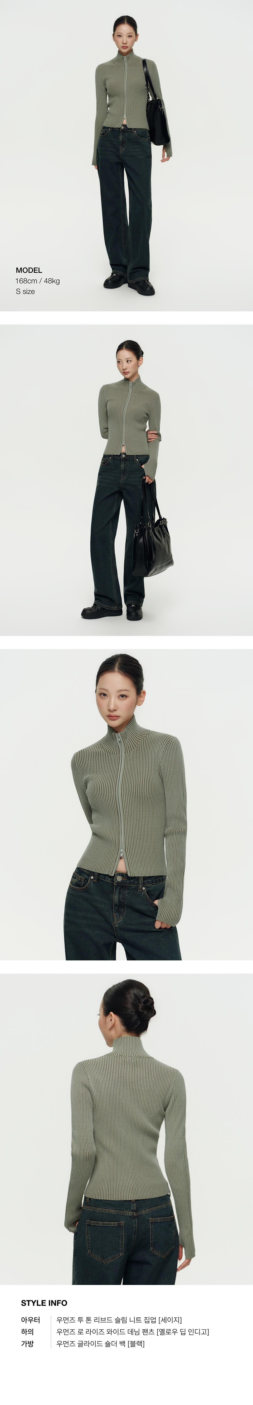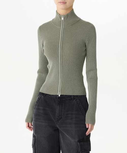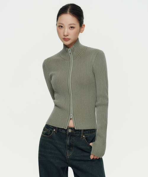 우먼즈 투 톤 리브드 슬림 니트 집업 [세이지]