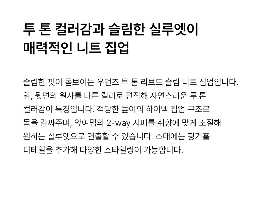 우먼즈 투 톤 리브드 슬림 니트 집업 [블루 그레이]