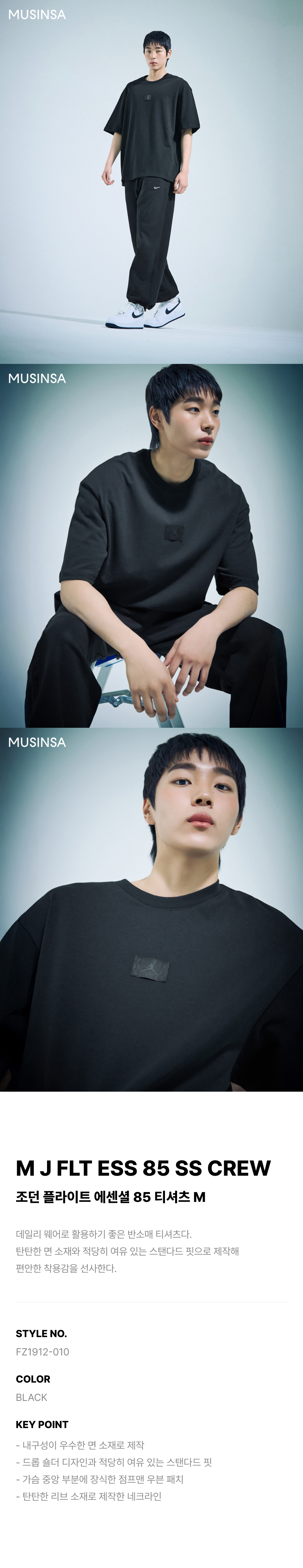 조던 플라이트 에센셜 85 티셔츠 M - 블랙 / FZ1912-010
