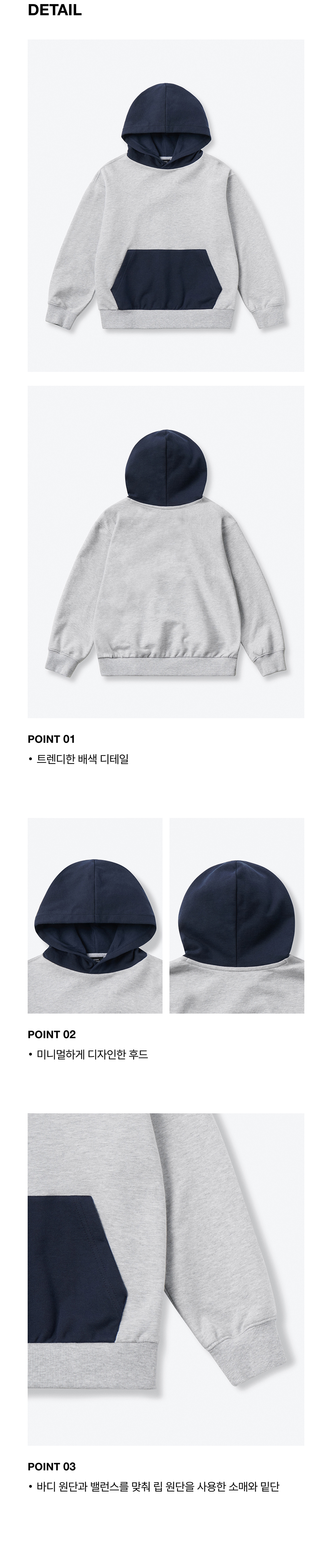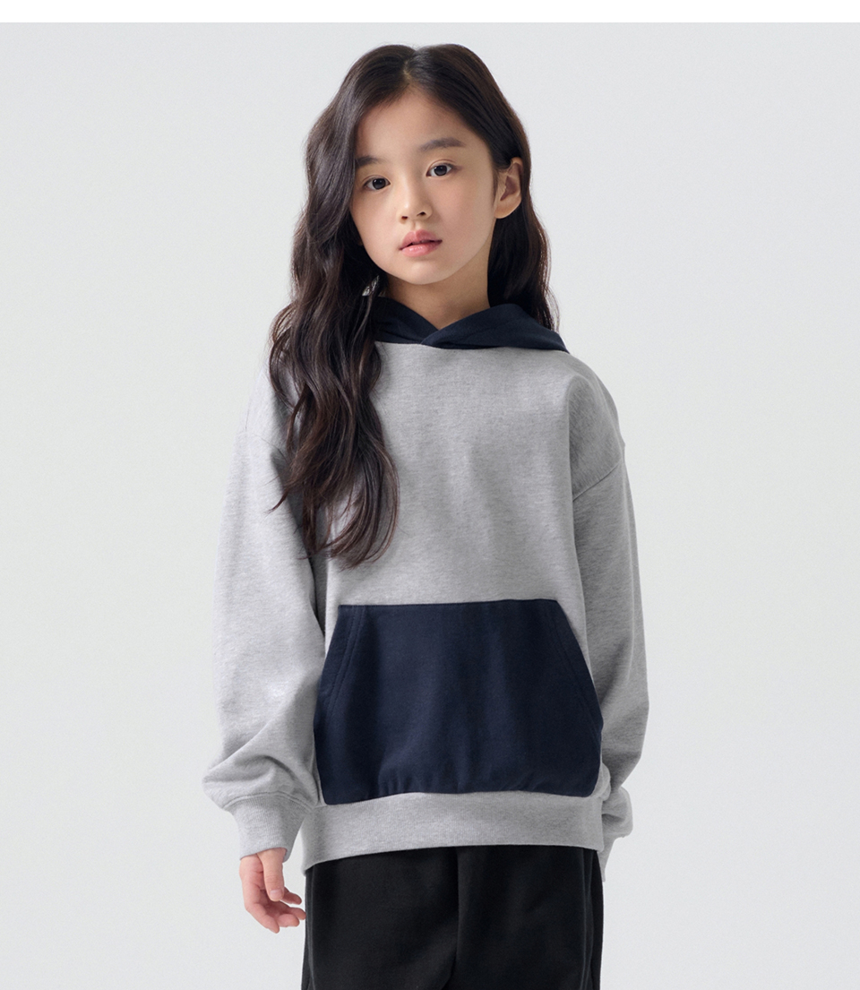 오버사이즈 컬러 블록 후디드 스웨트셔츠 [미디엄 그레이/네이비]