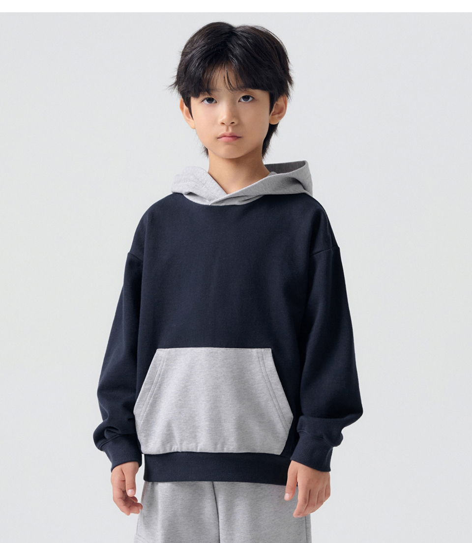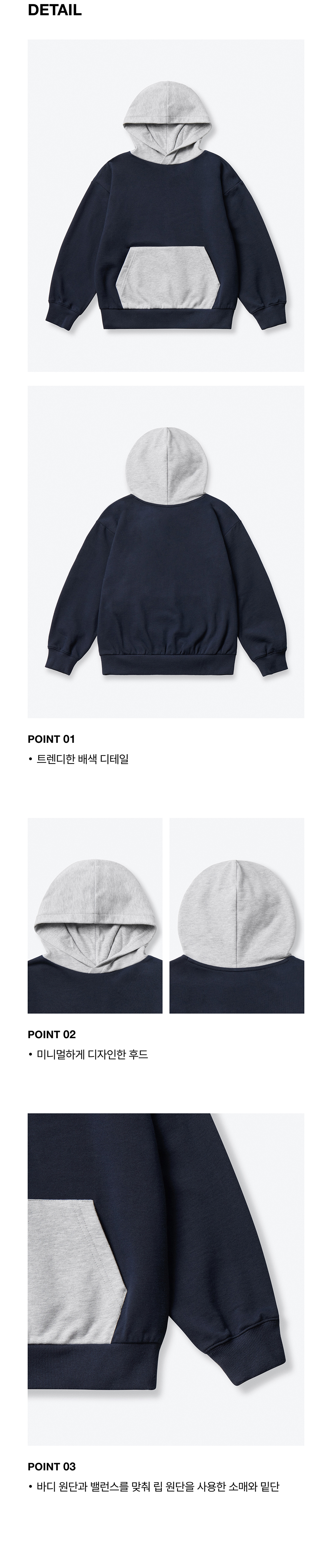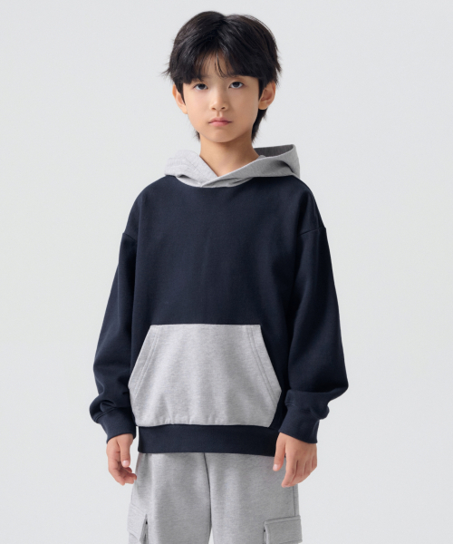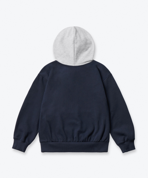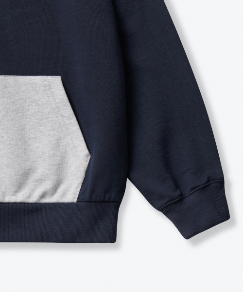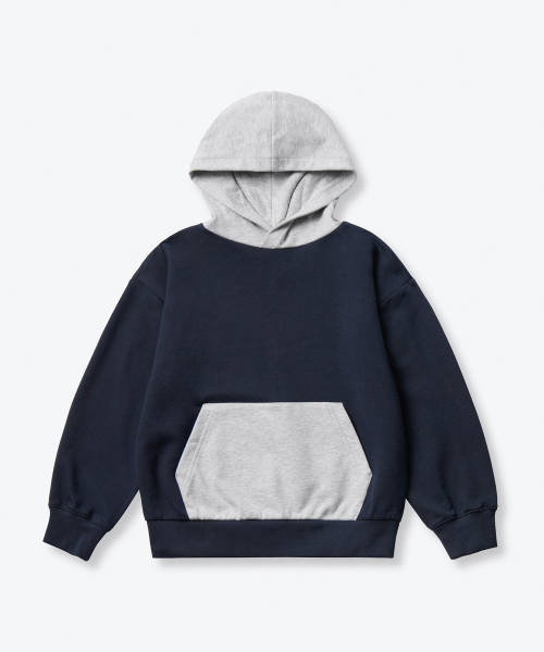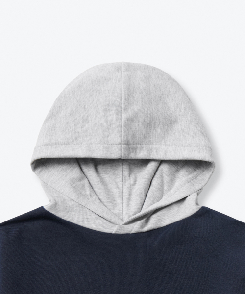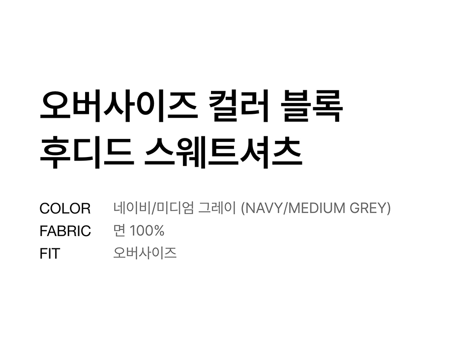 오버사이즈 컬러 블록 후디드 스웨트셔츠 [네이비/미디엄 그레이]