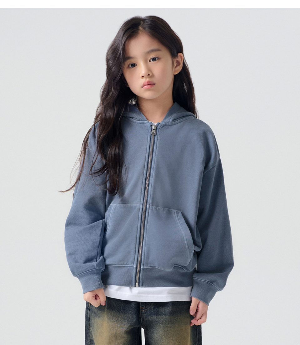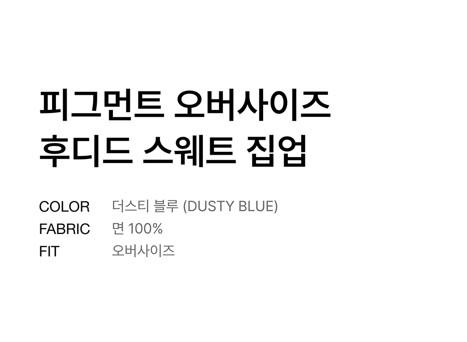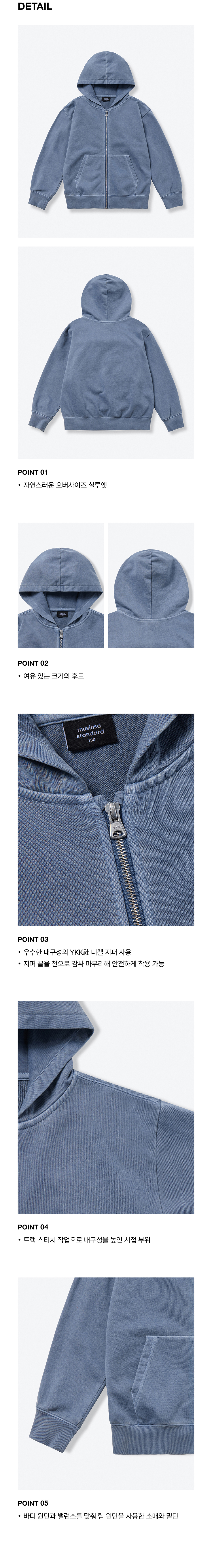 피그먼트 오버사이즈 후디드 스웨트 집업 [더스티 블루]
