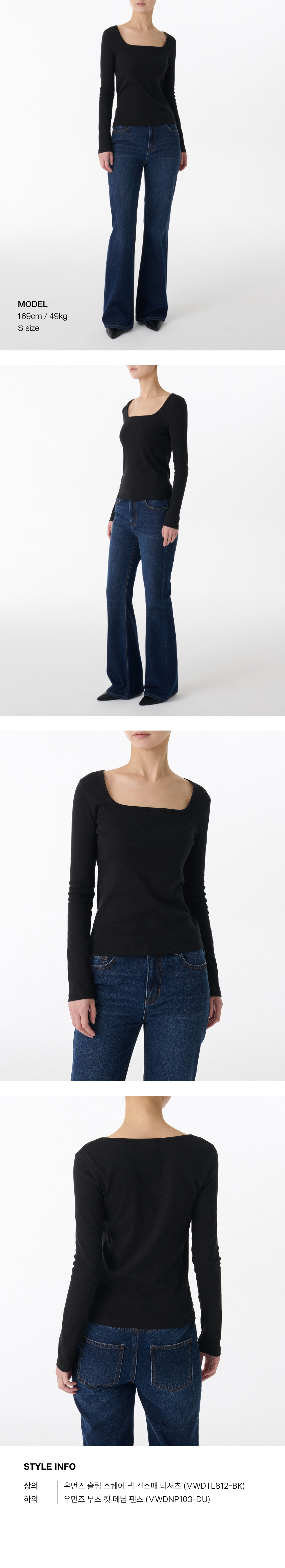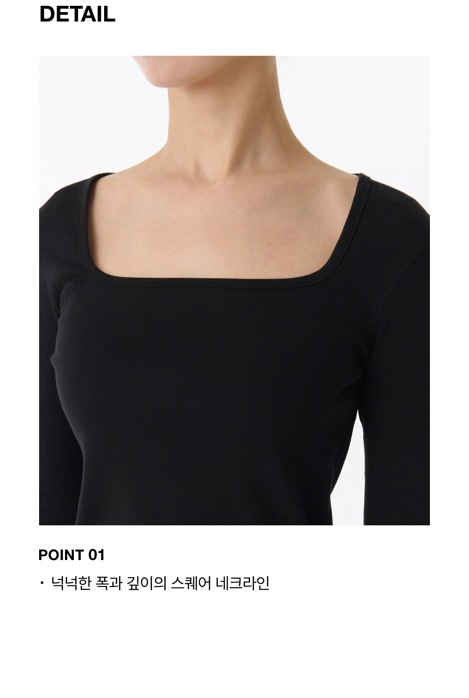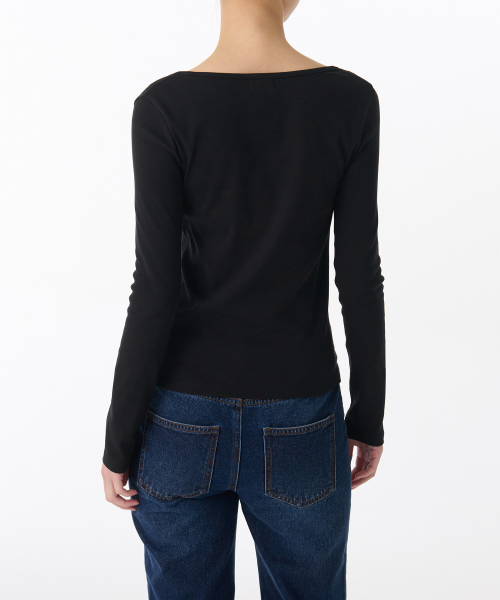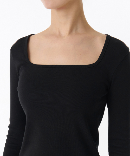 우먼즈 슬림 스퀘어 넥 긴소매 티셔츠 [블랙]