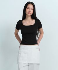 우먼즈 슬림 스퀘어 넥 티셔츠 [블랙]
