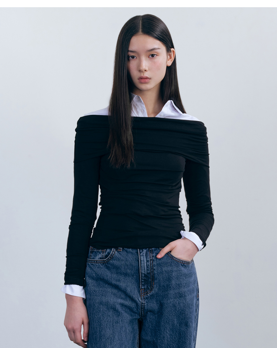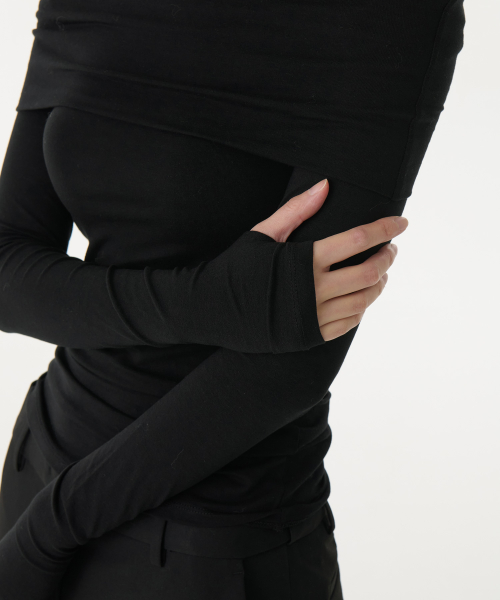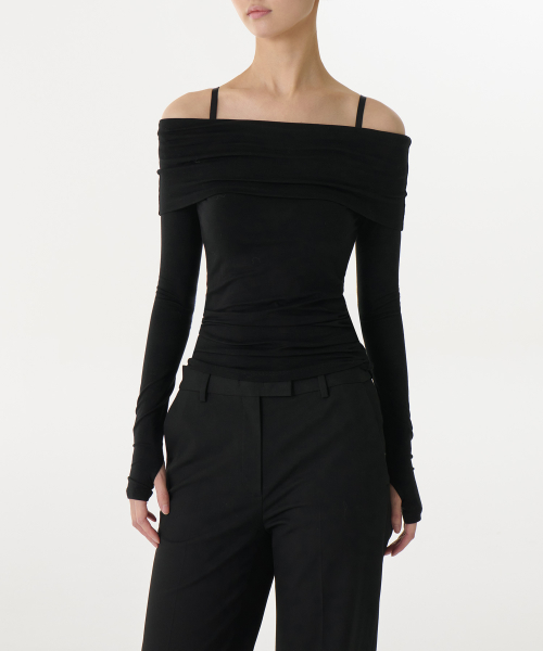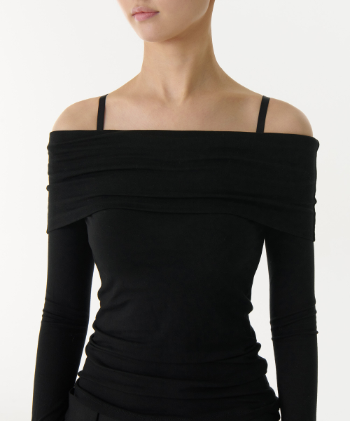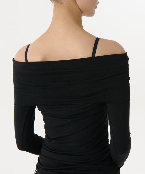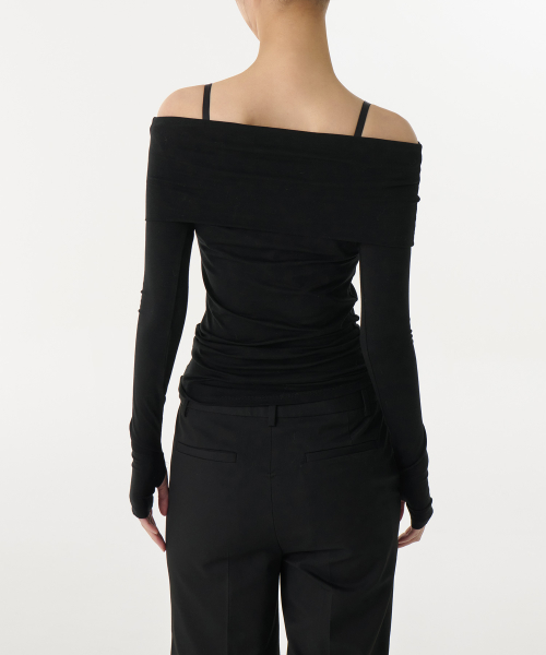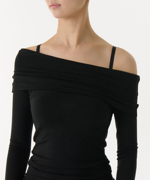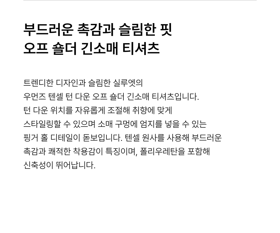 우먼즈 텐셀 턴 다운 오프 숄더 긴소매 티셔츠 [블랙]