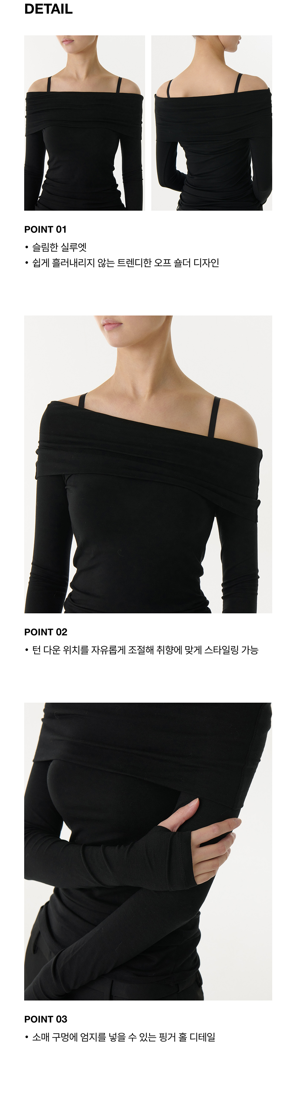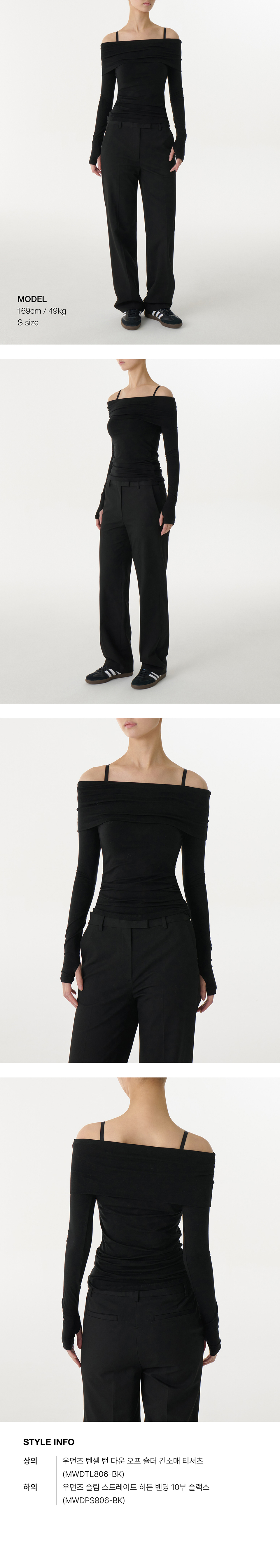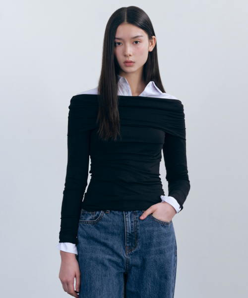 우먼즈 텐셀 턴 다운 오프 숄더 긴소매 티셔츠 [블랙]