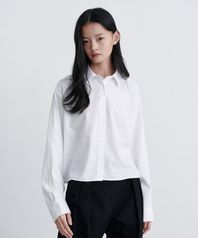 우먼즈 릴렉스드 크롭 실키 셔츠 [화이트]