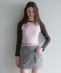 우먼즈 슬림 크롭 래글런 긴소매 티셔츠 [페일 핑크/다크 그레이]