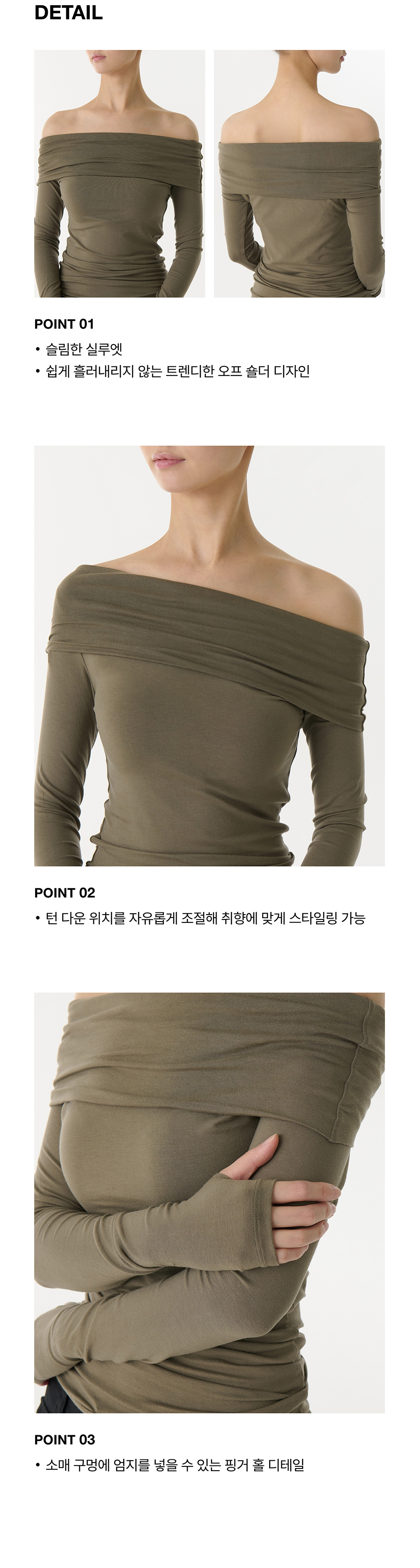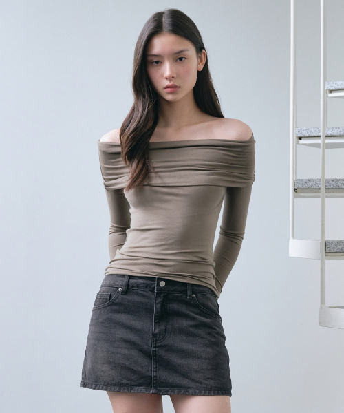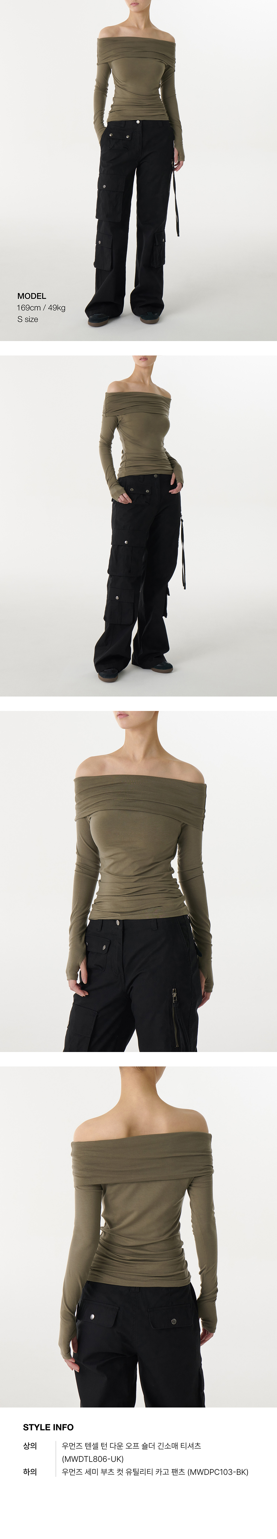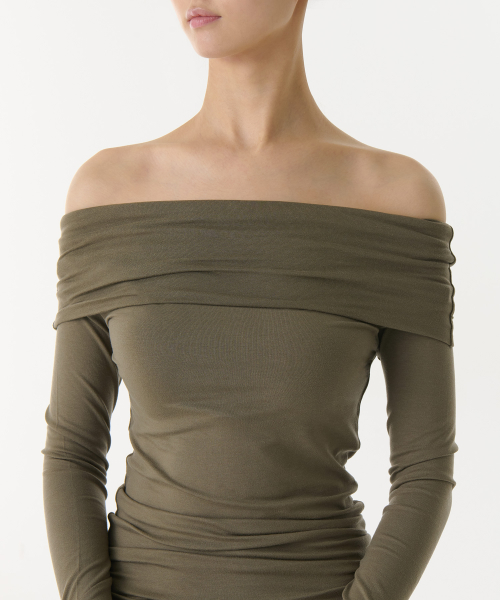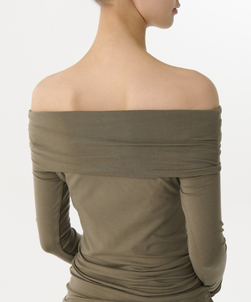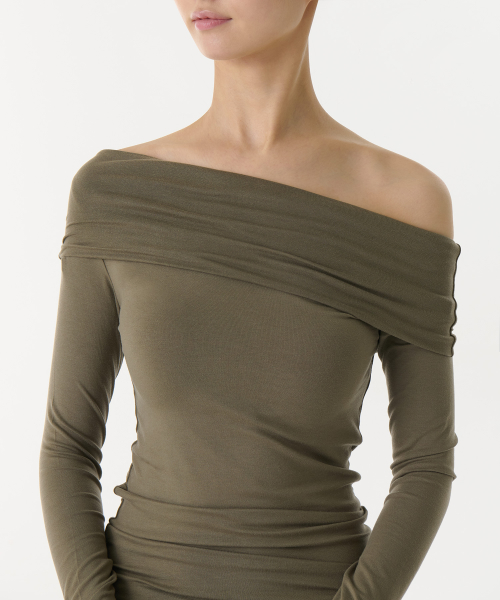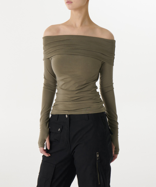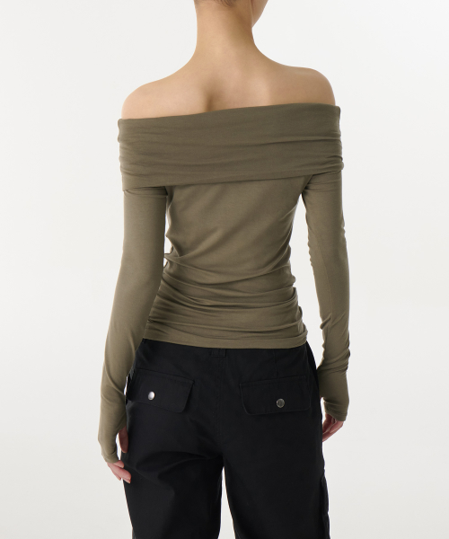 우먼즈 텐셀 턴 다운 오프 숄더 긴소매 티셔츠 [더스티 카키]