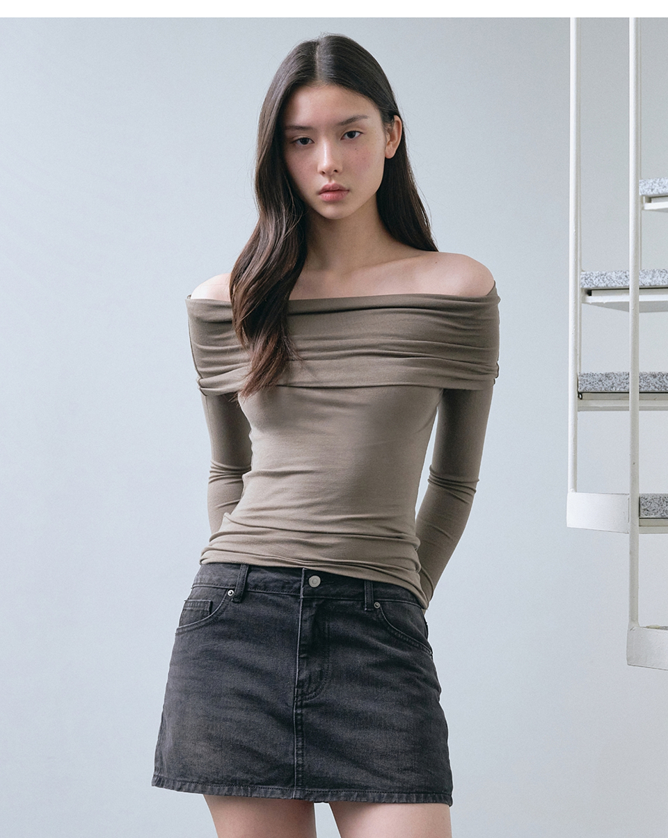 우먼즈 텐셀 턴 다운 오프 숄더 긴소매 티셔츠 [블랙]